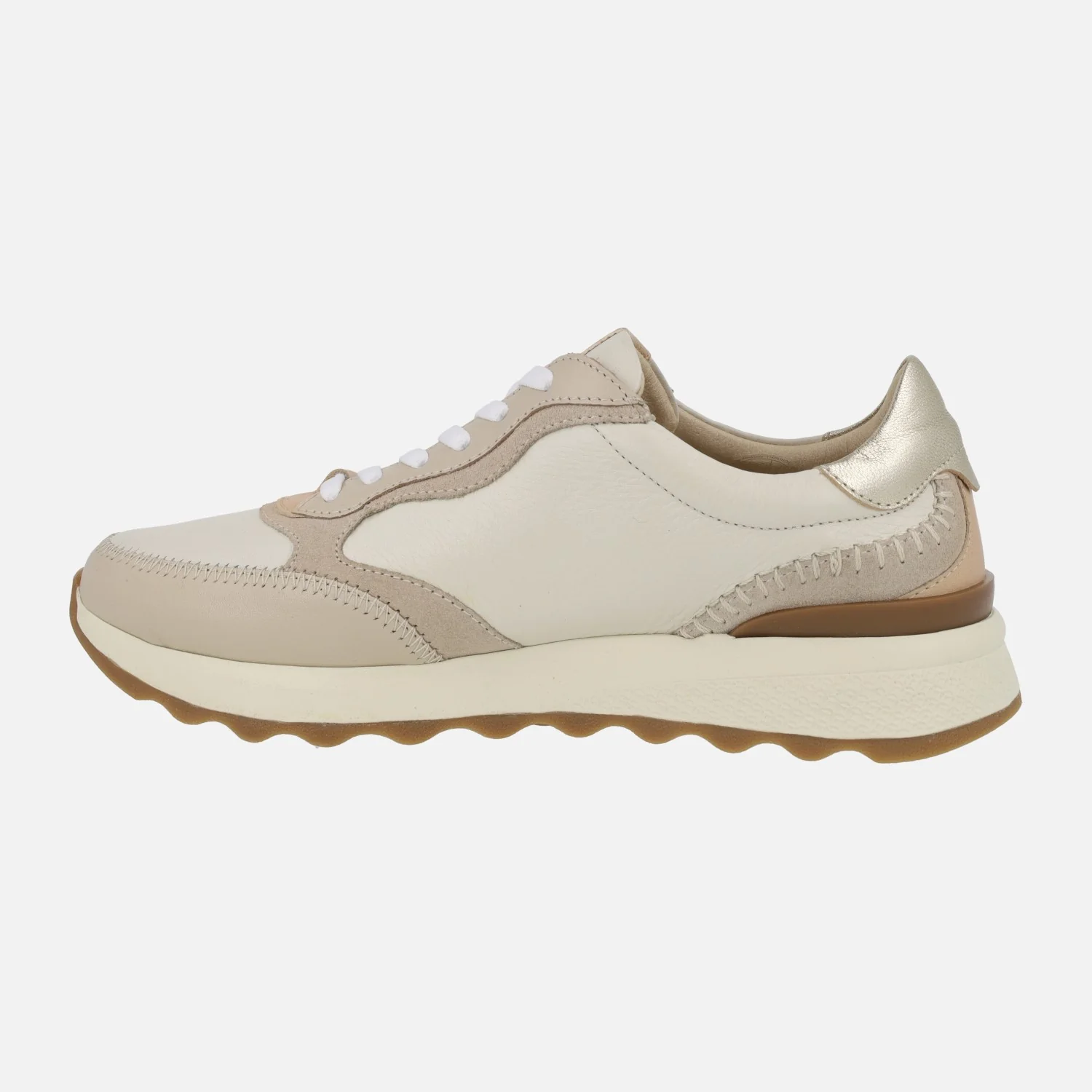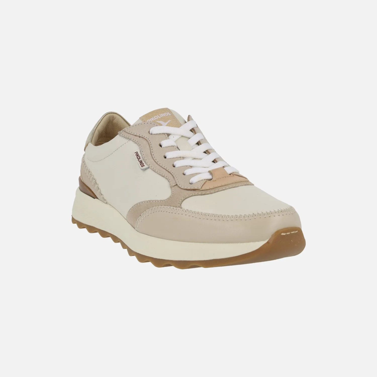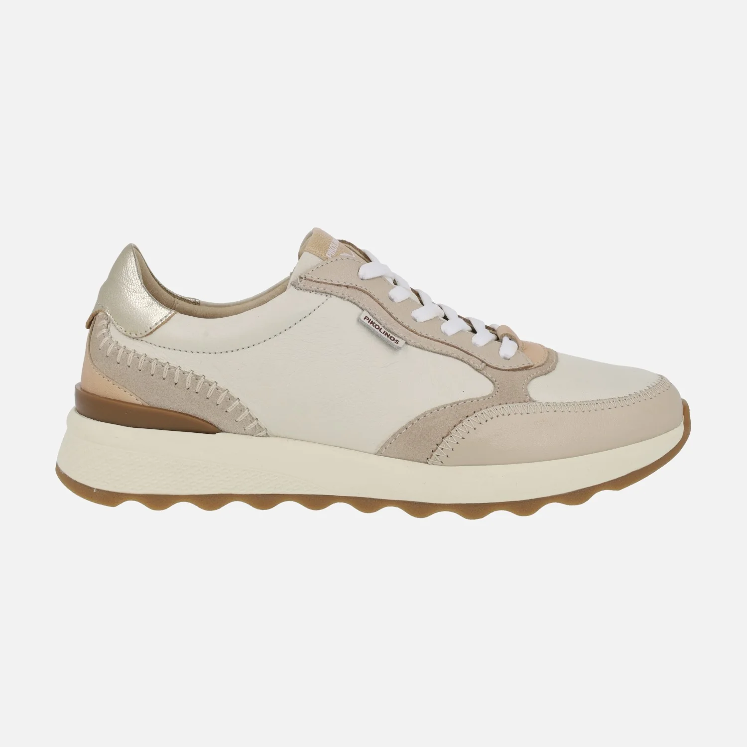 Zapatos deportivos de cordones de la marca Pikolinos modelo Arrecife W1M-6625C1 Marfil. Deportivos elaborados en piel en combinado beige/hielo/taupe. Cierre de cordones textiles. Interior textil con plantillas extraíbles. Memory foam. Suela sintética, muy ligera, de aproximadamente 4 cm de altura trasera (2 cm plataforma delantera).