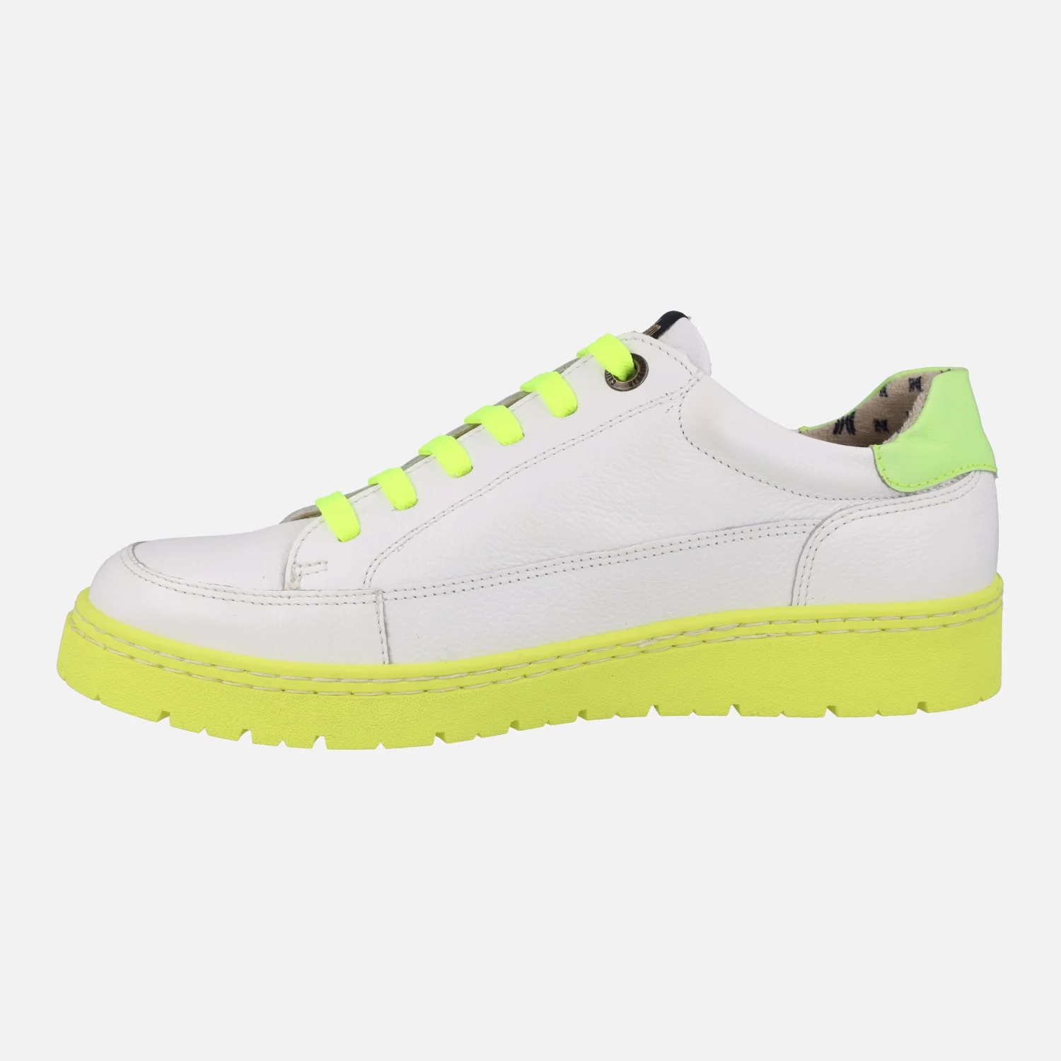 Ahora también en piel blanca con detalles en amarillo flúor.