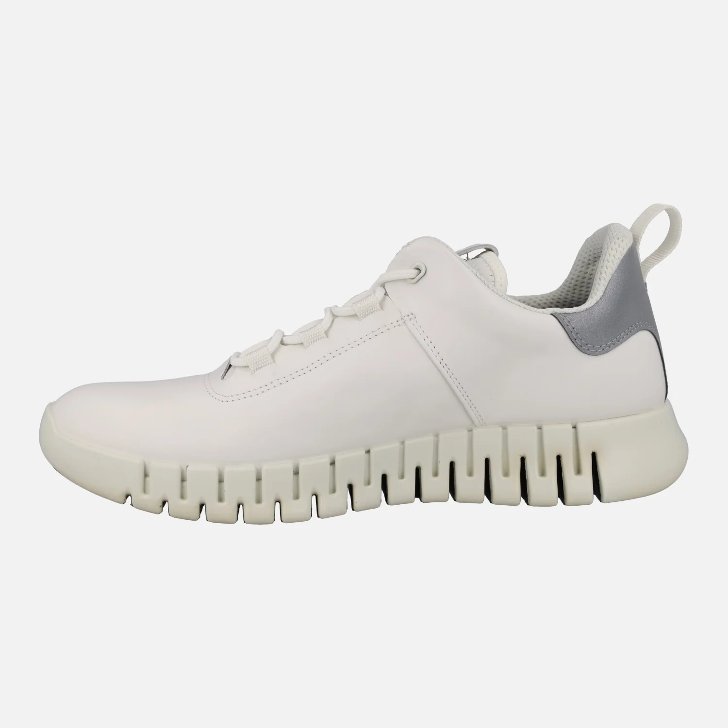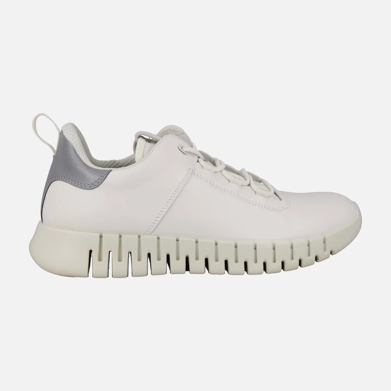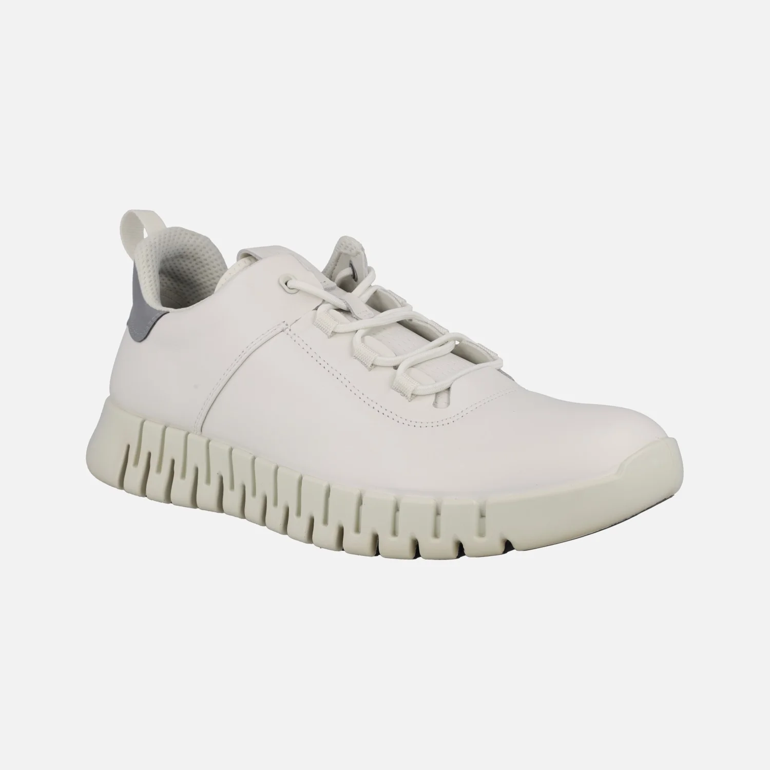 Nuevas deportivas confort para hombre de la marca Ecco modelo Gruuv M sneaker white 525204-50874 . Sneakers con cierre de cordones elásticos, elaboradas en piel blanca con detalle gris en el talón. Detalle de tirador en la talonera para facilitar el calce. Interior textil, con plantillas extraíbles de espuma forradas en tejido. Entresuela de PU acolchada. Piso de goma de 4 cms de altura en la parte trasera (2,5 cms parte delantera).