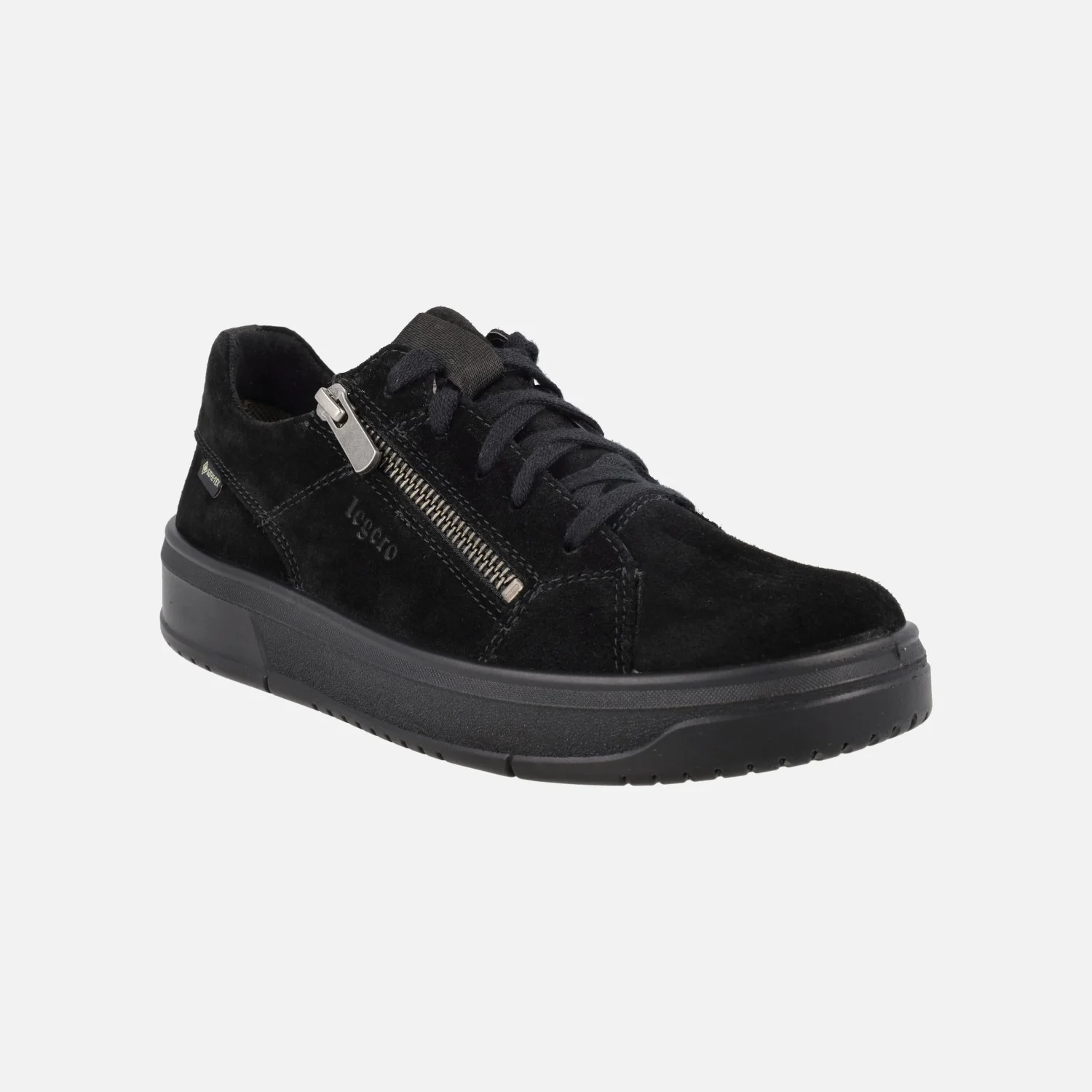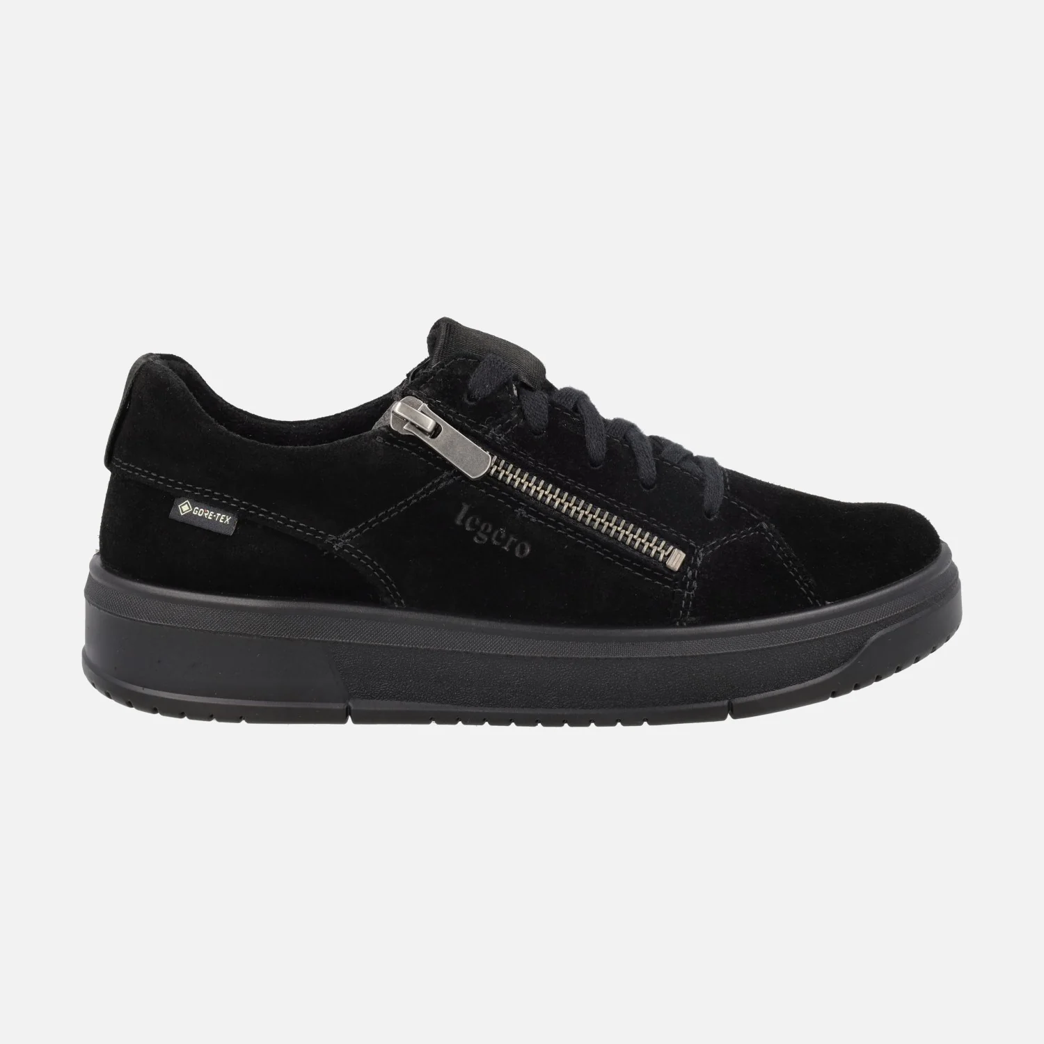 Zapatos deportivos para mujer con membrana impermeable Gore-tex de la marca Legero, modelo 2-000334 disponibles en serraje taupe ( Rejoise/dark clay ) y en serraje negro (Schwarz). Deportivas elaboradas en piel serraje con cierre de cordones textiles además de cremallera lateral. Interior en combinado de piel y tejido, con membrana Gore-tex impermeable y gran aislante térmico. Plantillas extraíbles forradas de piel. Piso de goma con una altura trasera de 3,5 cms (2 cms altura delantera).