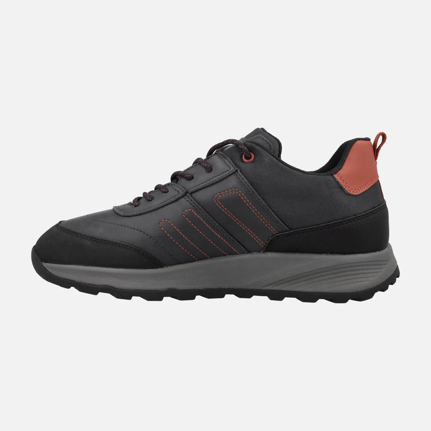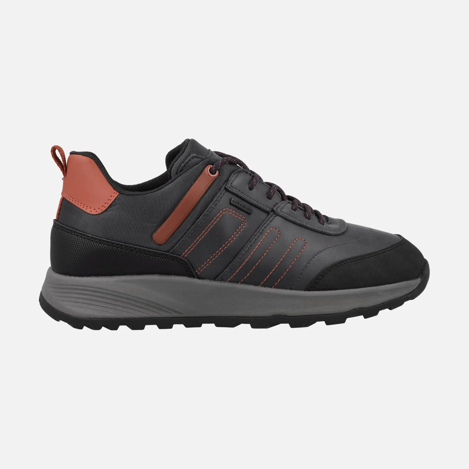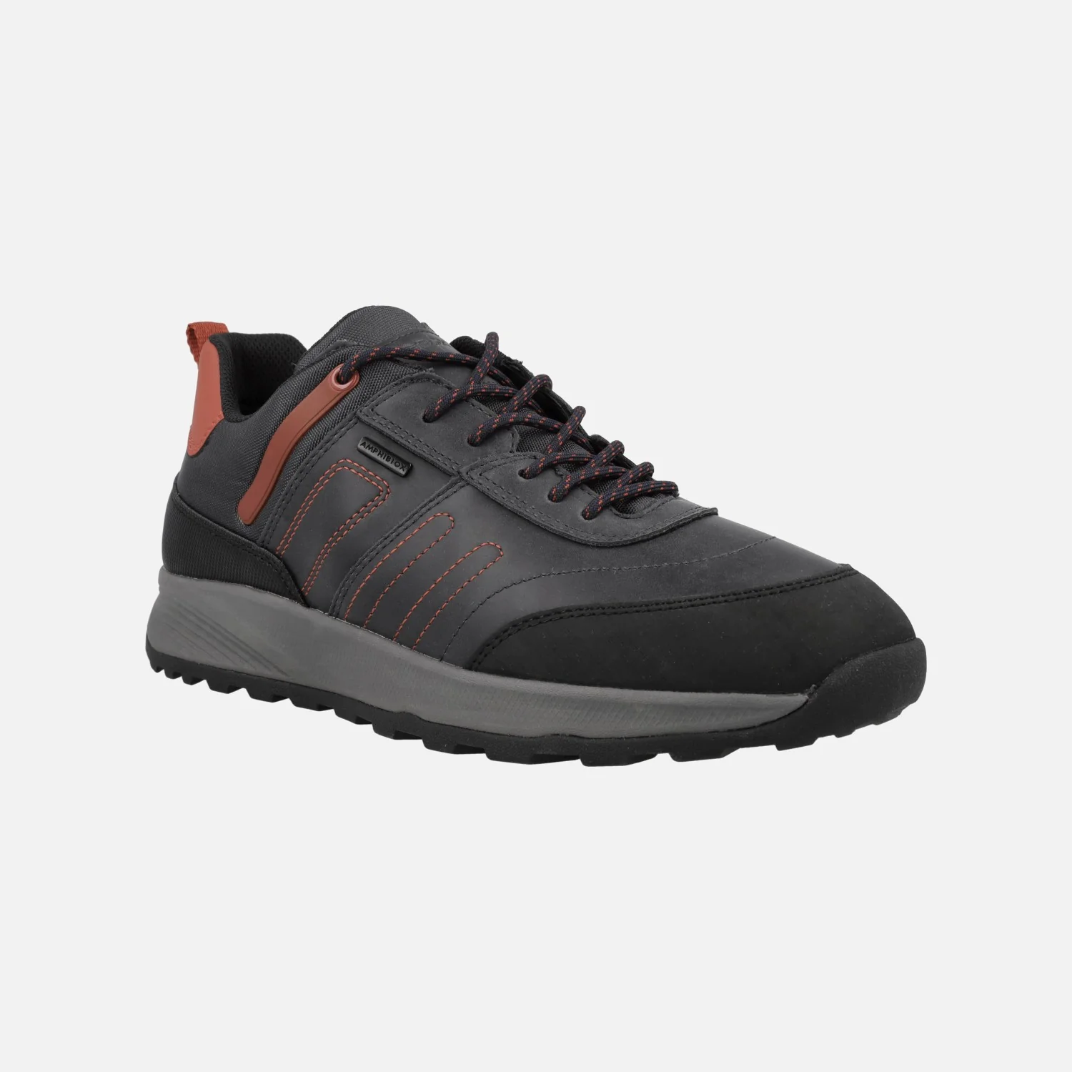 Sneakers impermeables para hombre de la colección Amphibiox de Geox, modelo TERRESTRE B ABX U26EZA. Fabricados en color Azul combinando con Negro y con adornos y pespuntes en color Naranja, combinando distintos tipos de materiales. Cierra con cordones. Interior textil con plantillas extraíbles. Membrana interior AMPHIBIOX, resistente al agua. Piso de goma.