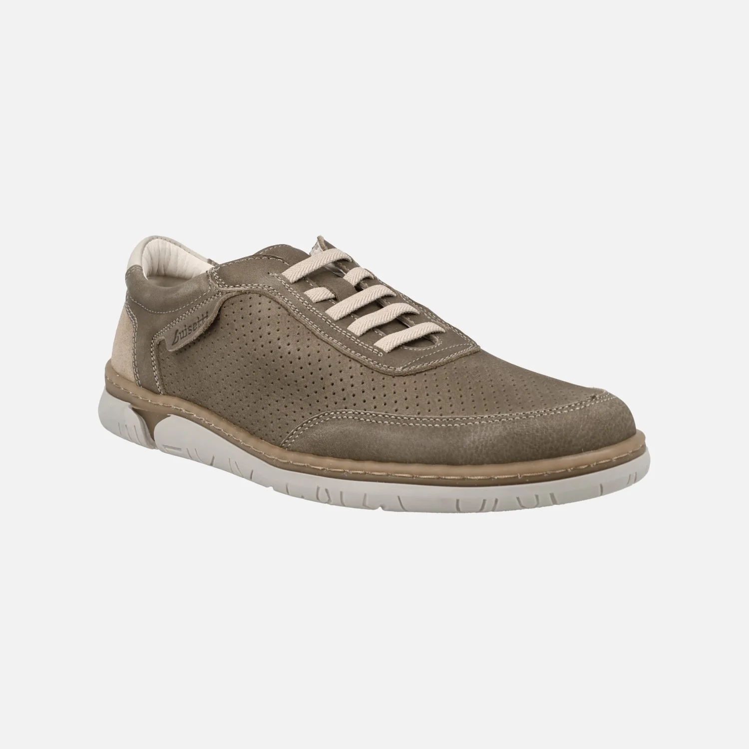 Zapatos deportivos para hombre de la marca Luisetti modelo 38303 GS disponibles en piel engrasada azul marino o taupe. Deportivos con cierre de gomas elásticas, elaborados en piel con detalle de picados. Pieza de serraje en el talón. Interior textil, con plantillas extraíbles. Piso de goma.