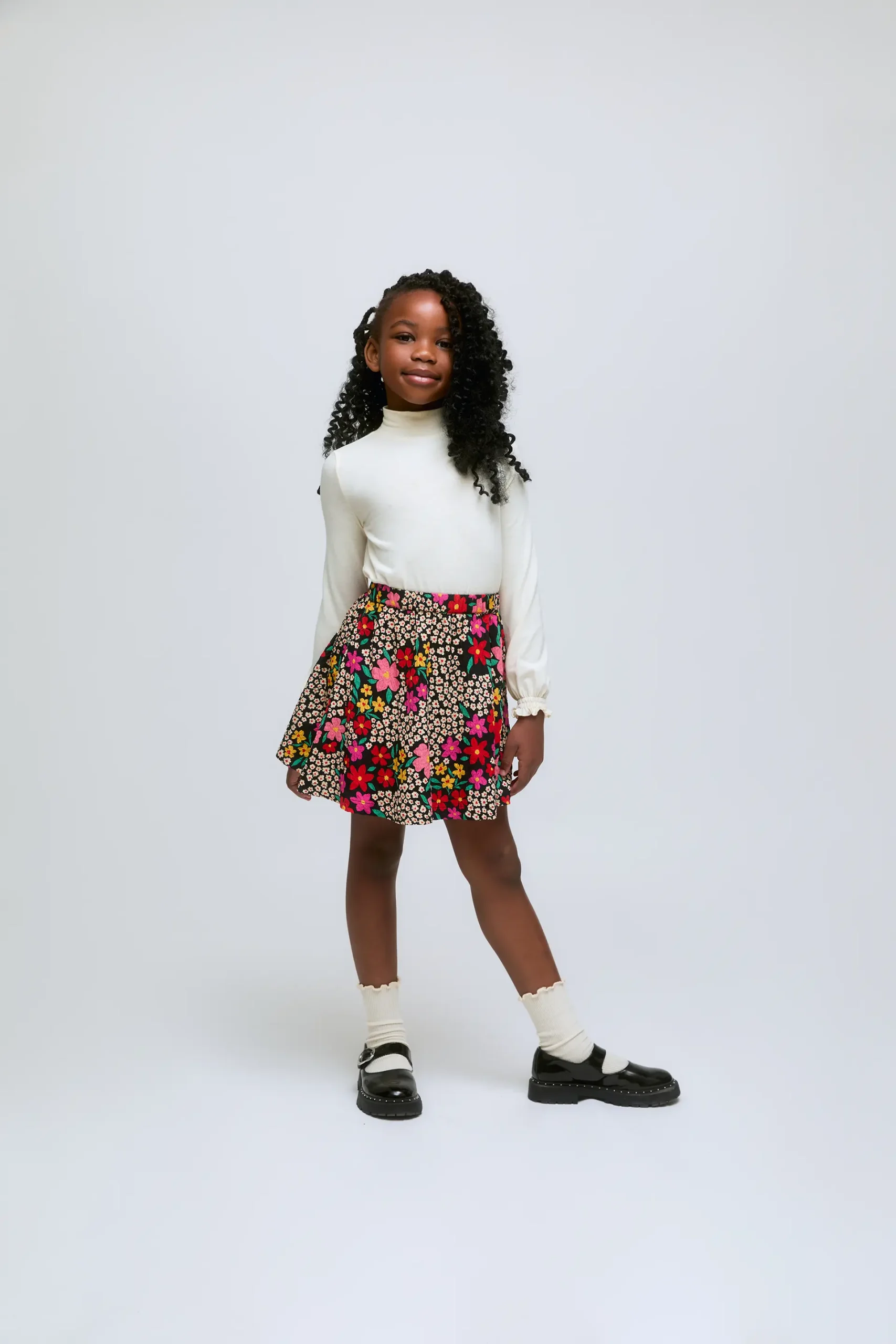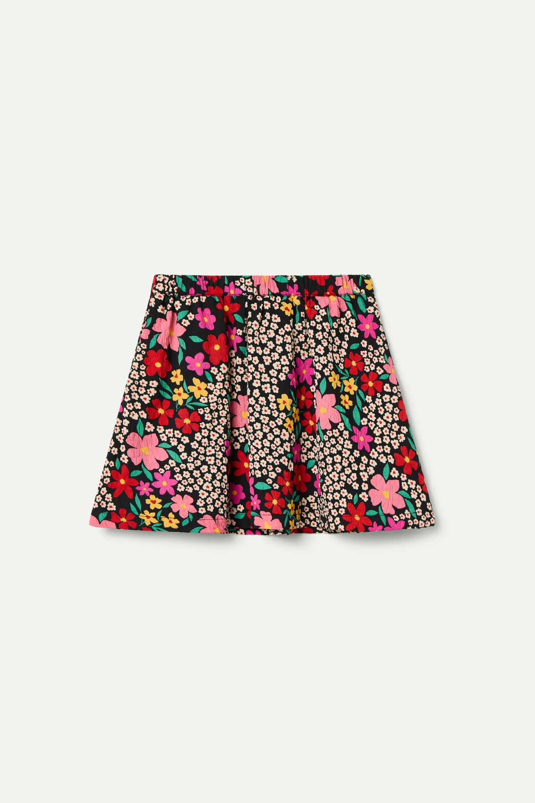 Falda corta de niña con estampado floral Giardino. Cintura elástica, corte con vuelo.