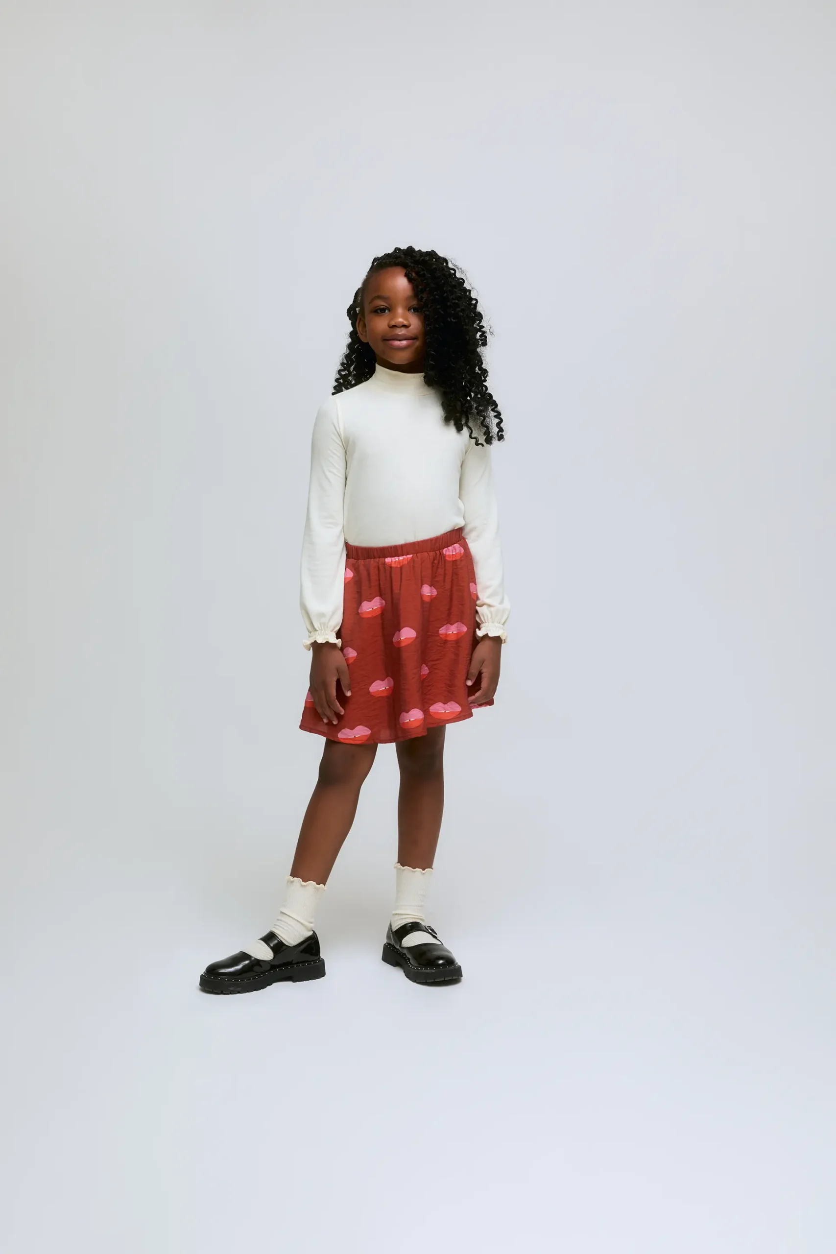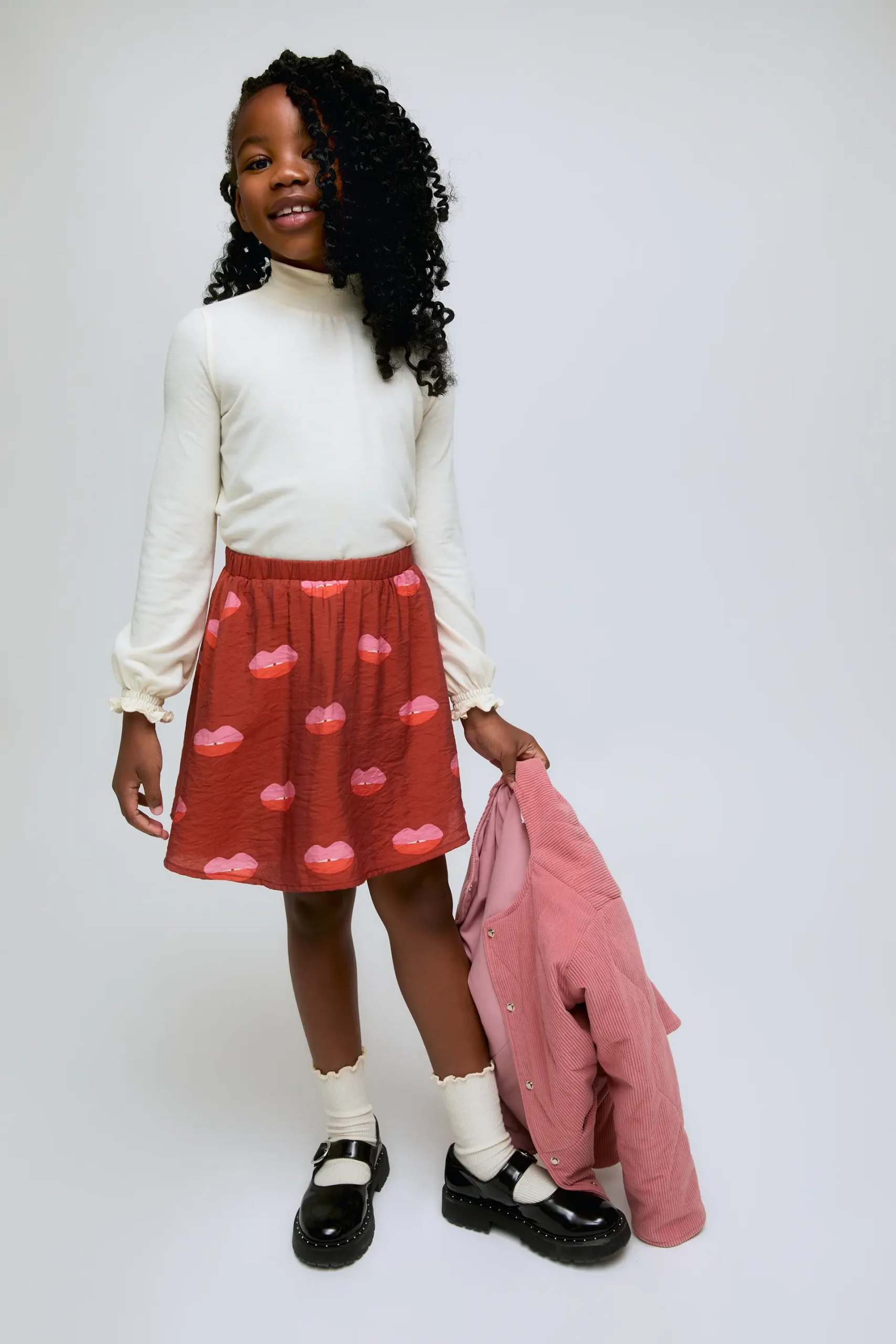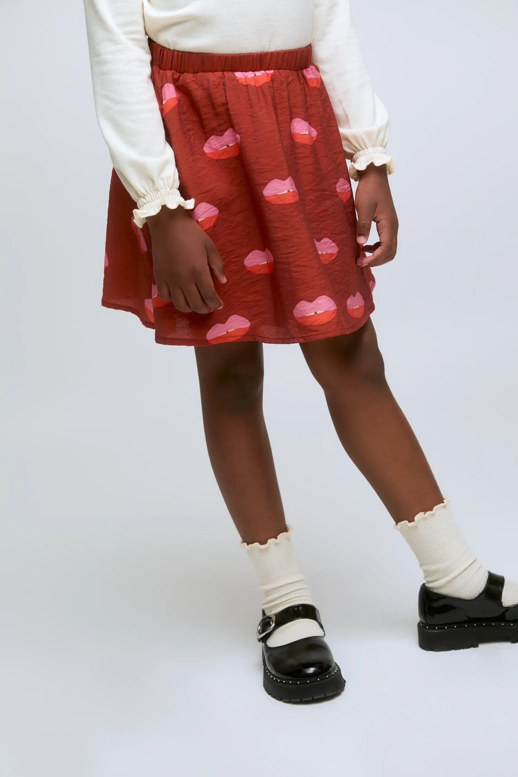 Falda corta de niña con estampado gráfico Lips. Cinturilla elástica con detalle fruncido.