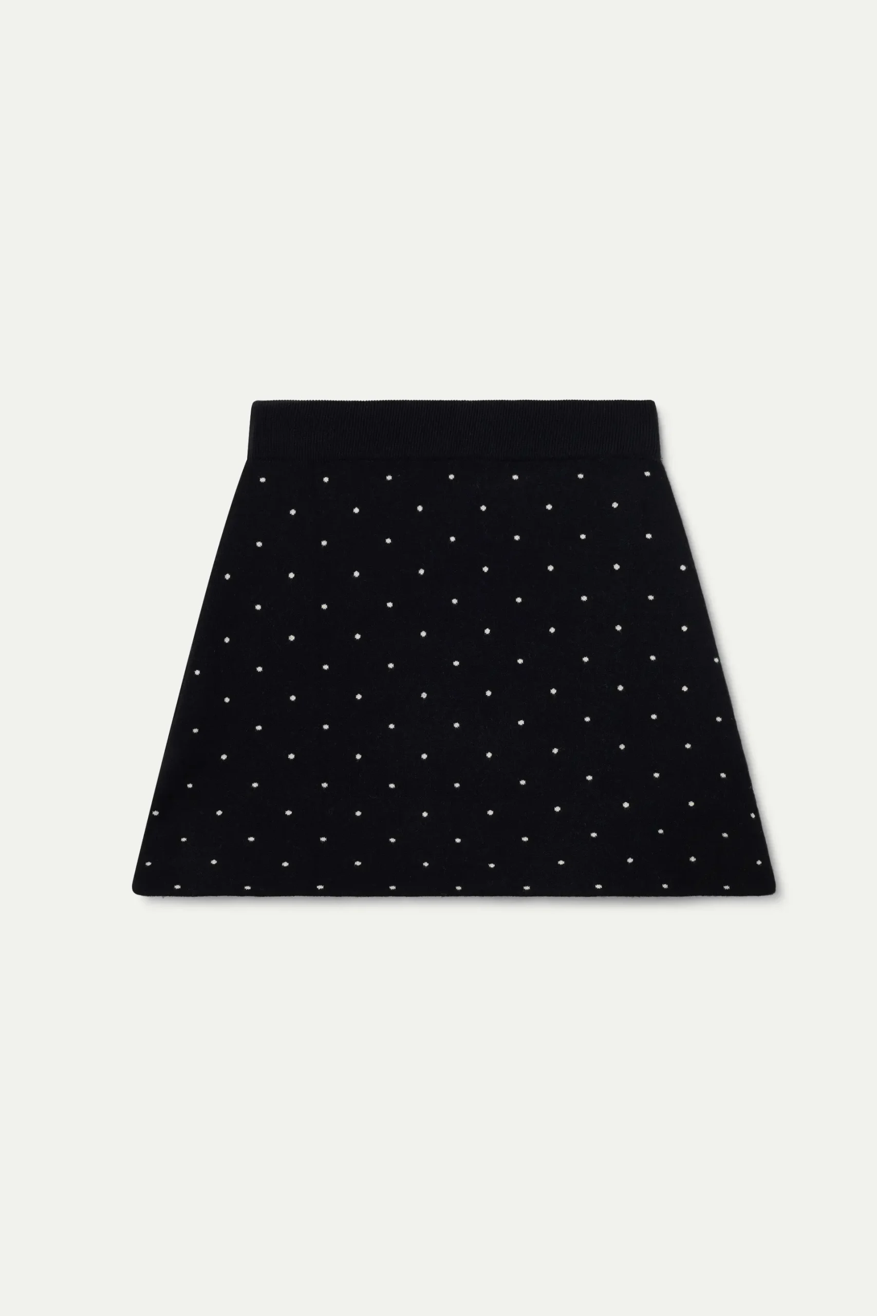 Falda corta punto jacquard con estampado mini black. Con cintura elástica y tiro medio. La modelo mide 178 cm y lleva la tasa S.