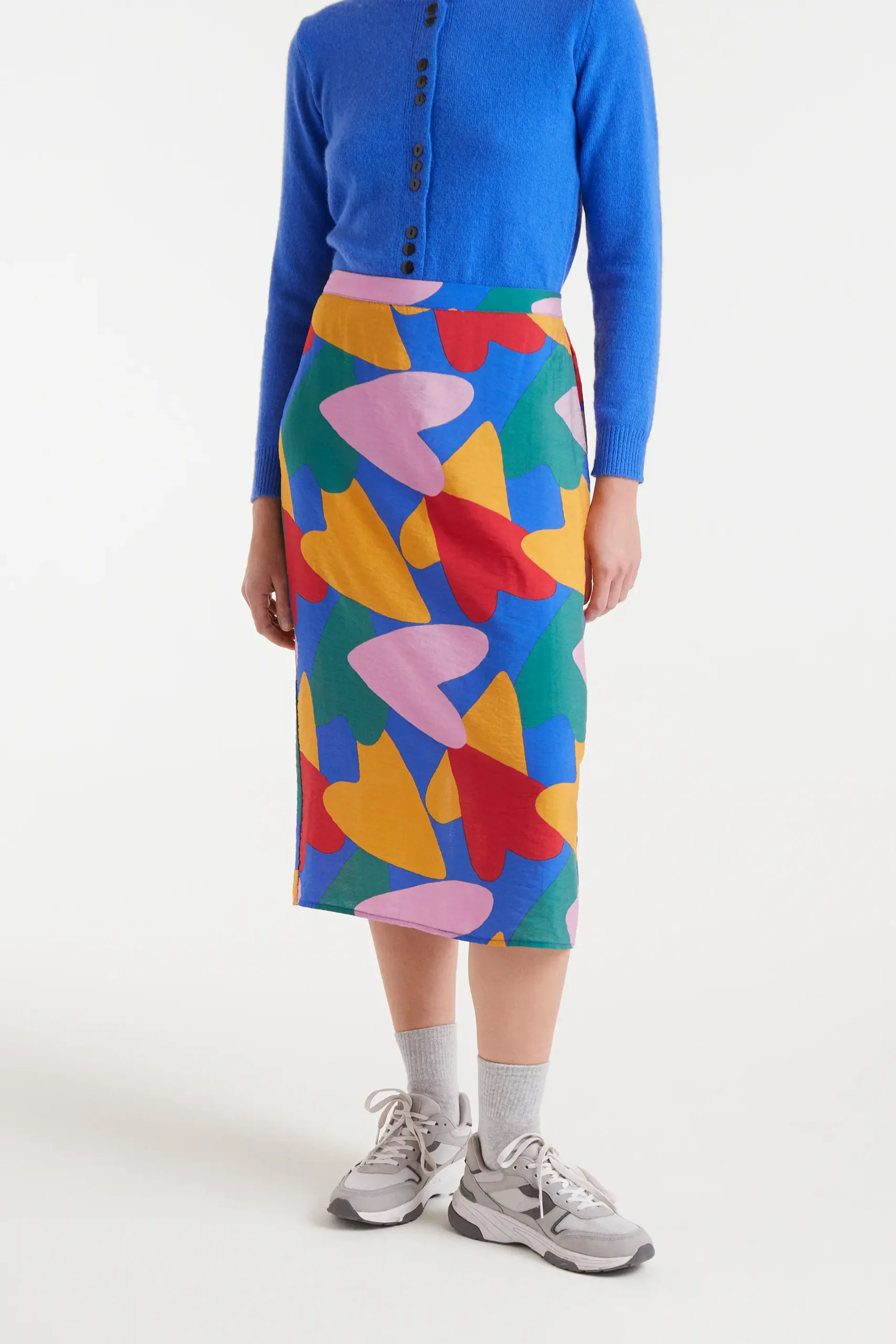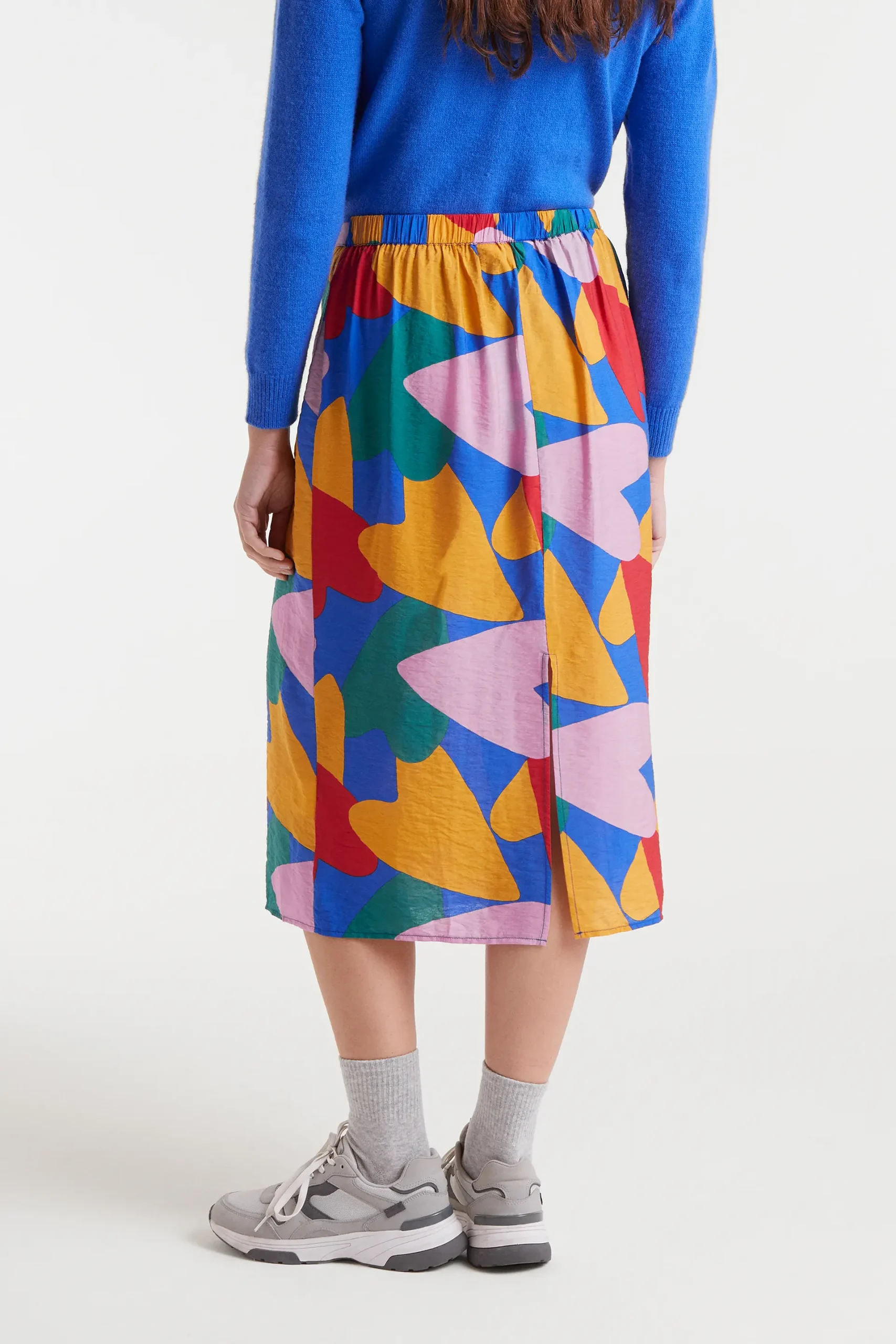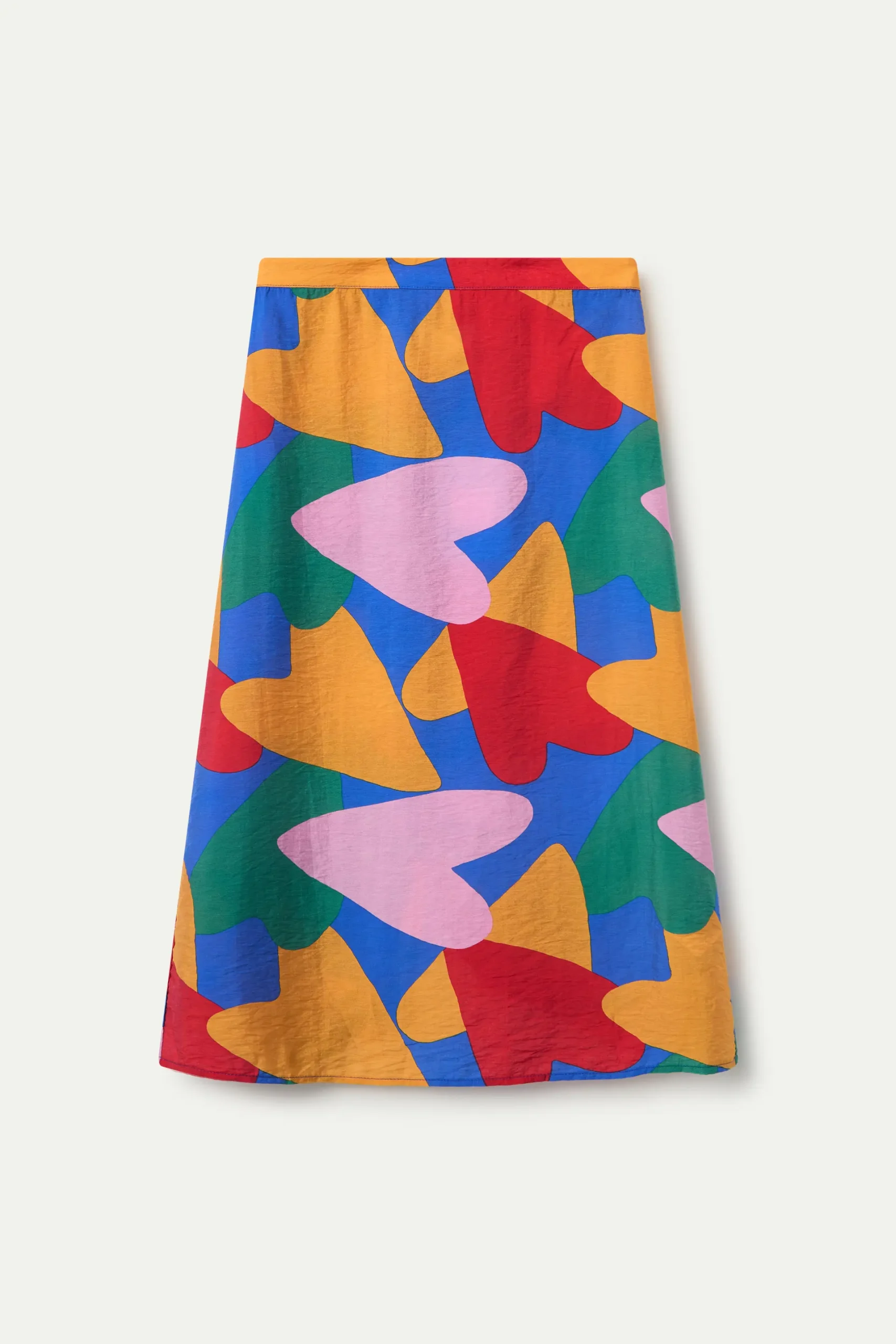 Falda midi de tejido crepé ligero con estampado Cupido. Tiro medio con goma elástica trasera y ligera apertura en la parte inferior. Forro interior.La modelo mide 178 cm y lleva la talla S.