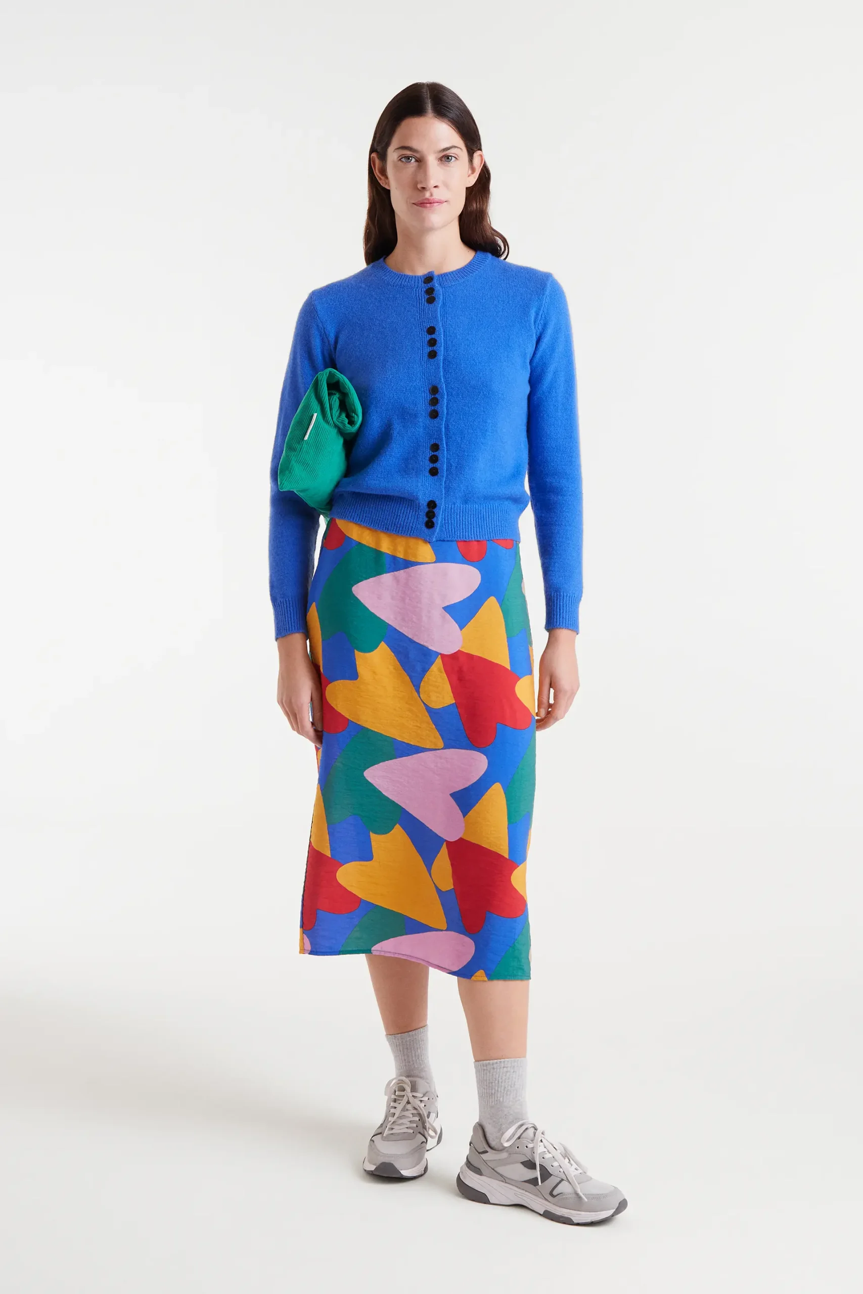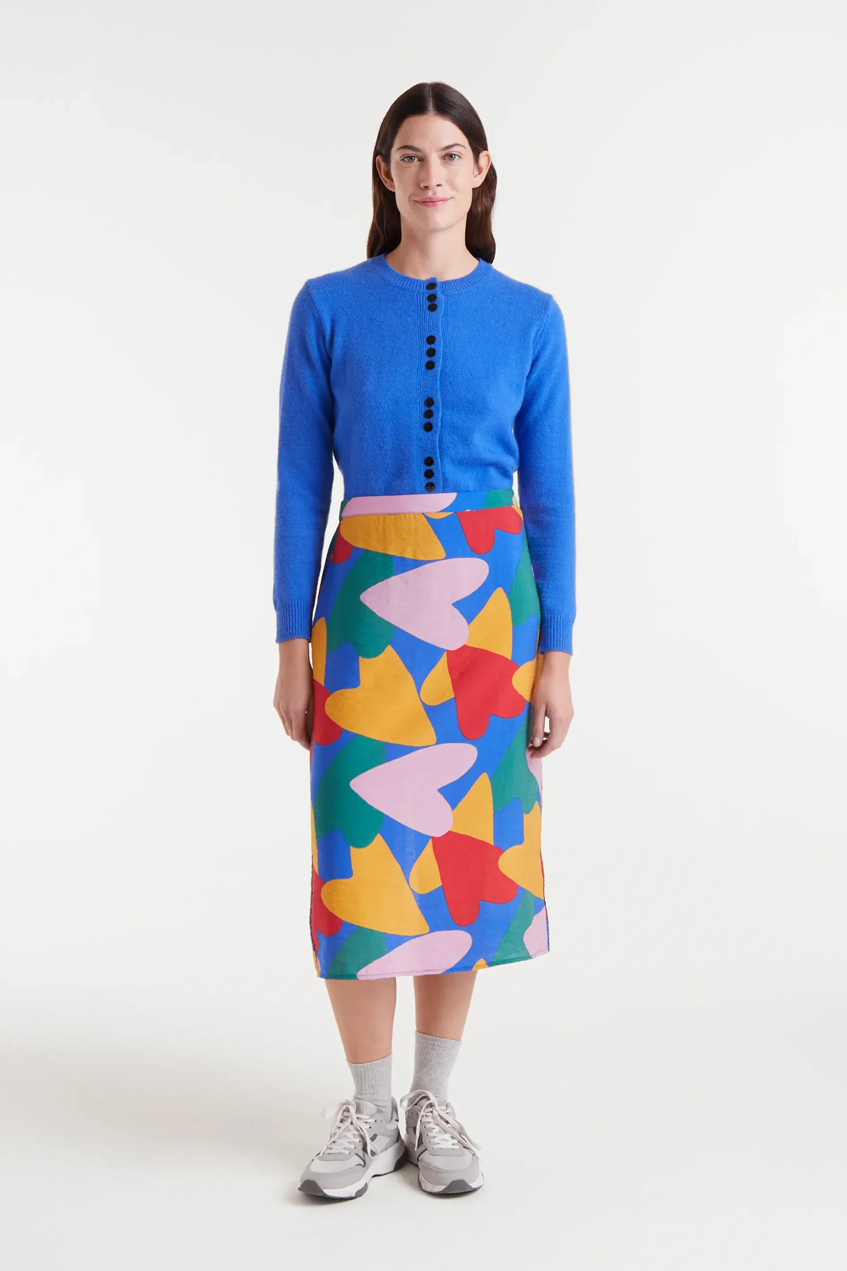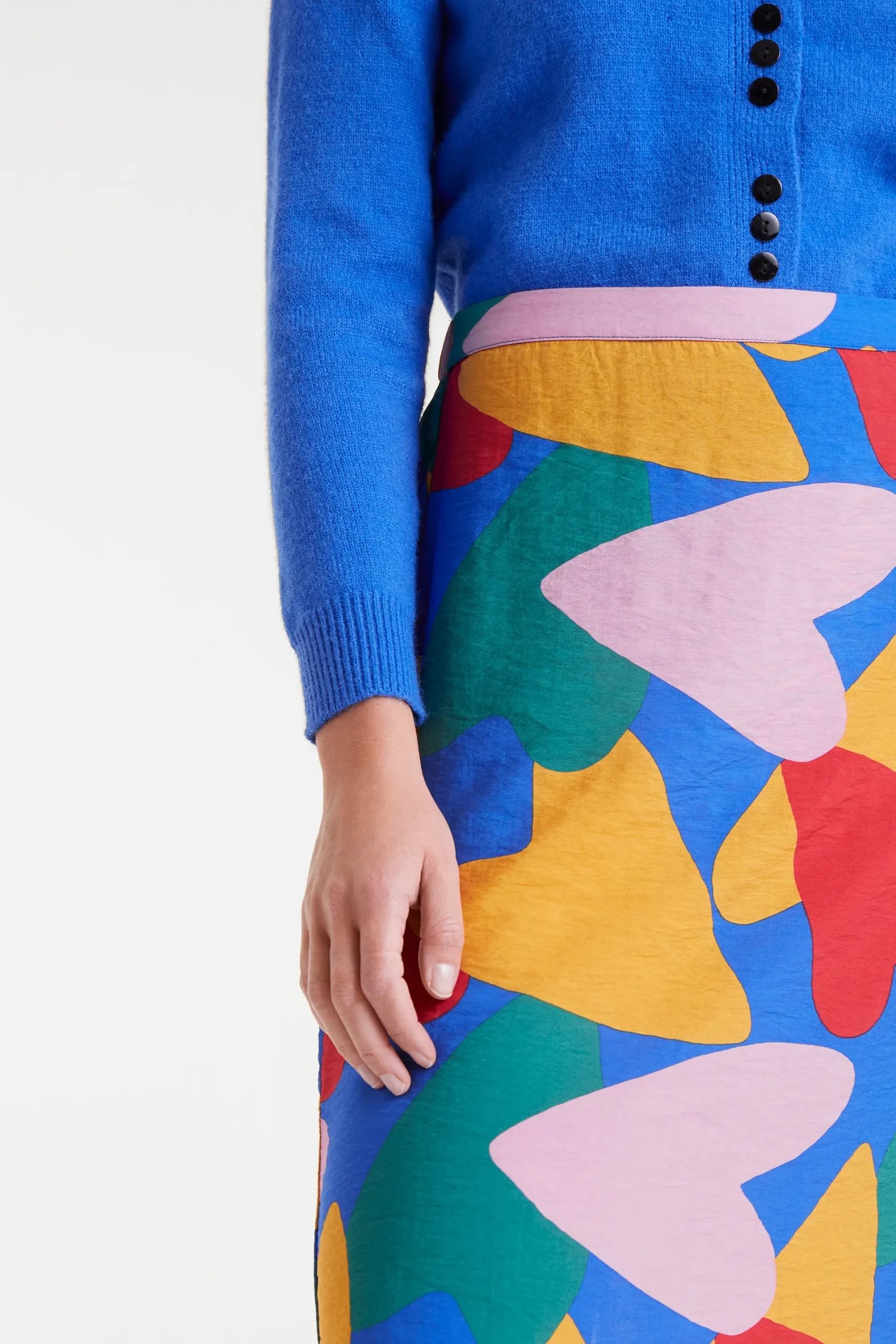 Falda midi de tejido crepé ligero con estampado Cupido. Tiro medio con goma elástica trasera y ligera apertura en la parte inferior. Forro interior.La modelo mide 178 cm y lleva la talla S.