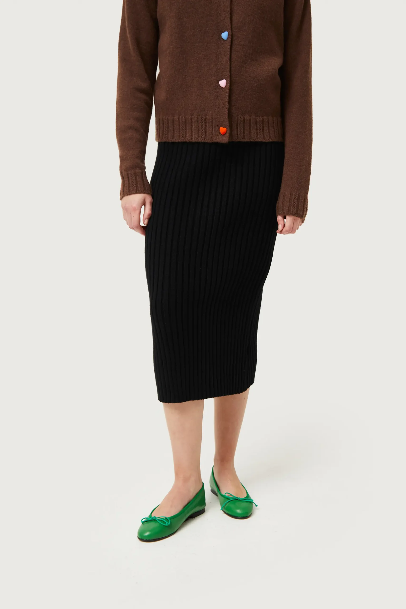 Falda midi de punto negra