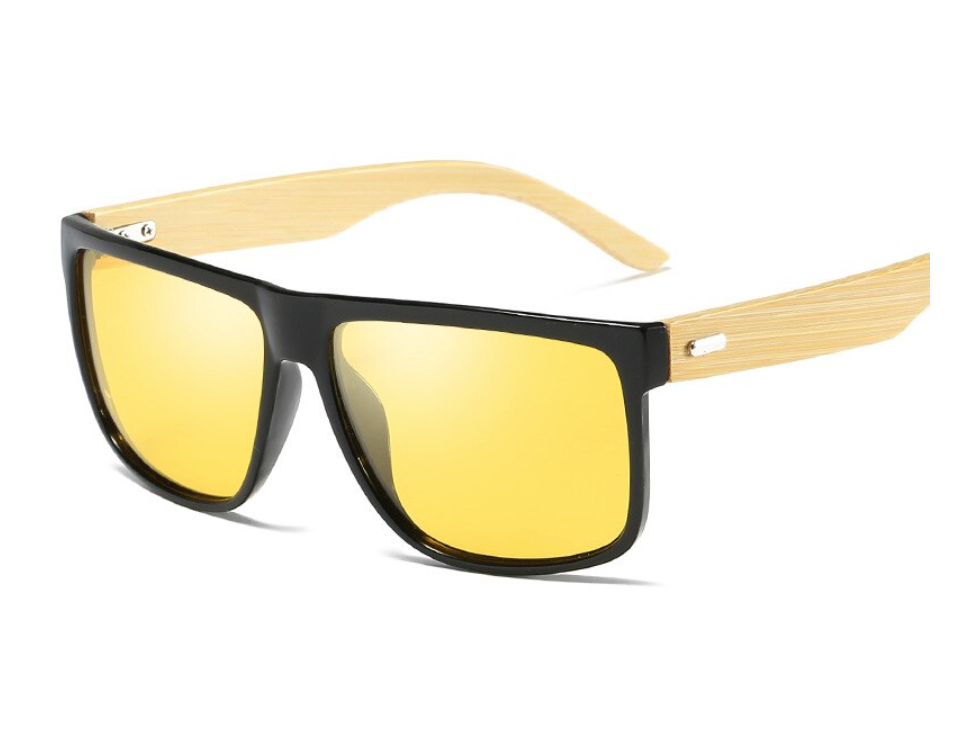Gafas de sol de bambú naturales Eco-friendy rectangulares y patas de madera.