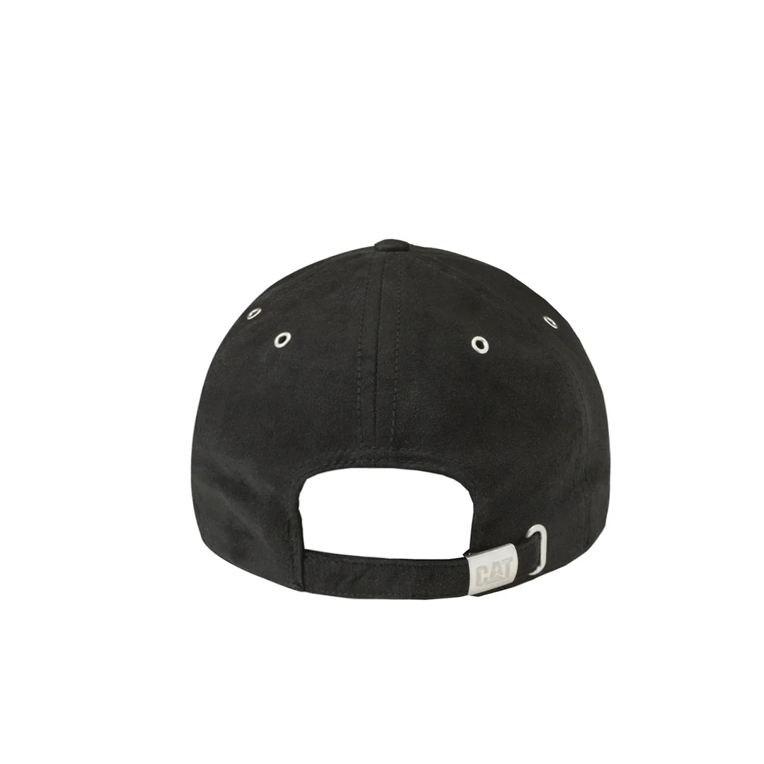 Gorra de 6 paneles con logo Cat bordado y cierre de correa con hebilla metalica con grabado de la marca, material que simula piel y contraste en la parte baja de la visera curva.