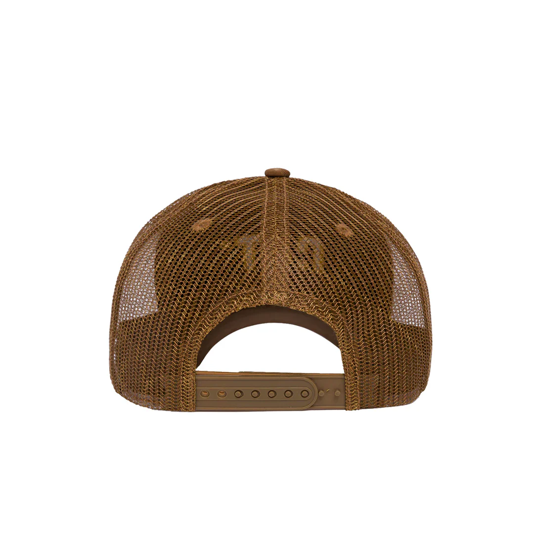 Gorra ventilada con logo CAT bordado en relieve y cierre de correa plástica tradicional. Malla trasera en contraste y visera curva.