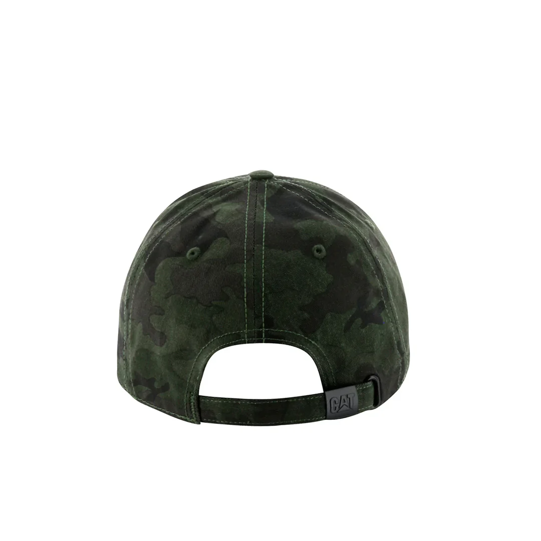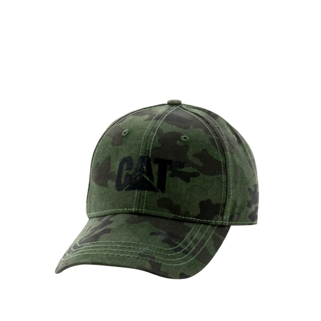 Gorra de 6 paneles con logo Cat bordado y cierre de correa con hebilla metalica con grabado de la marca