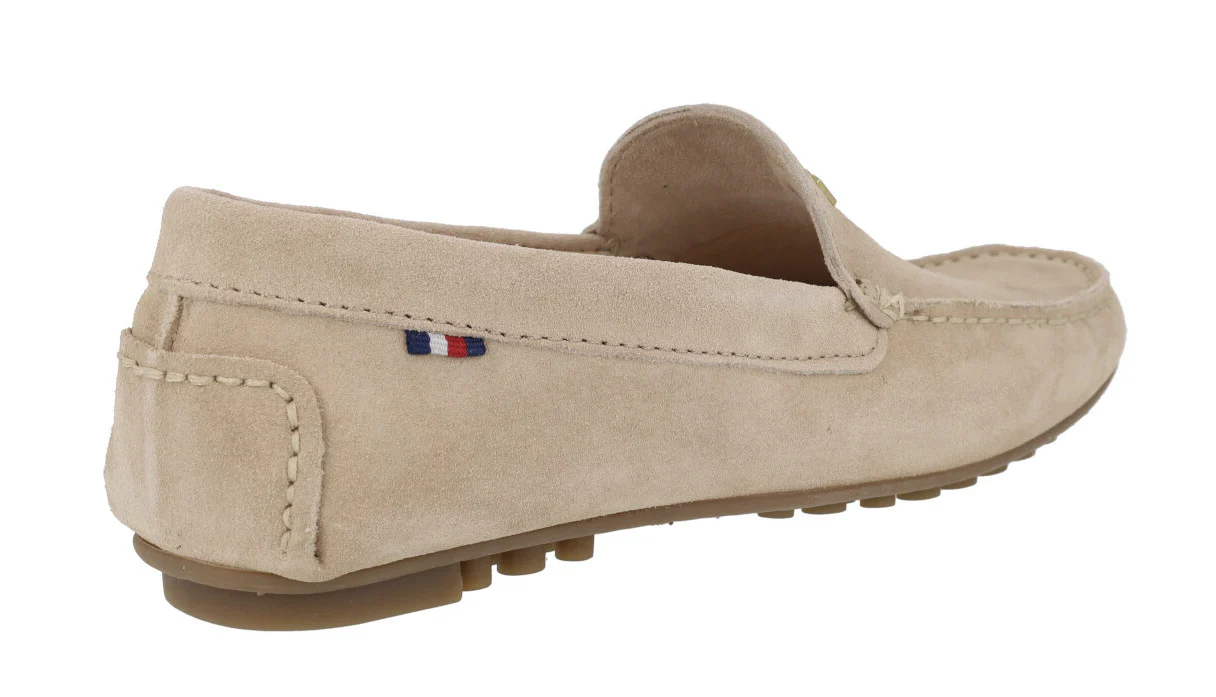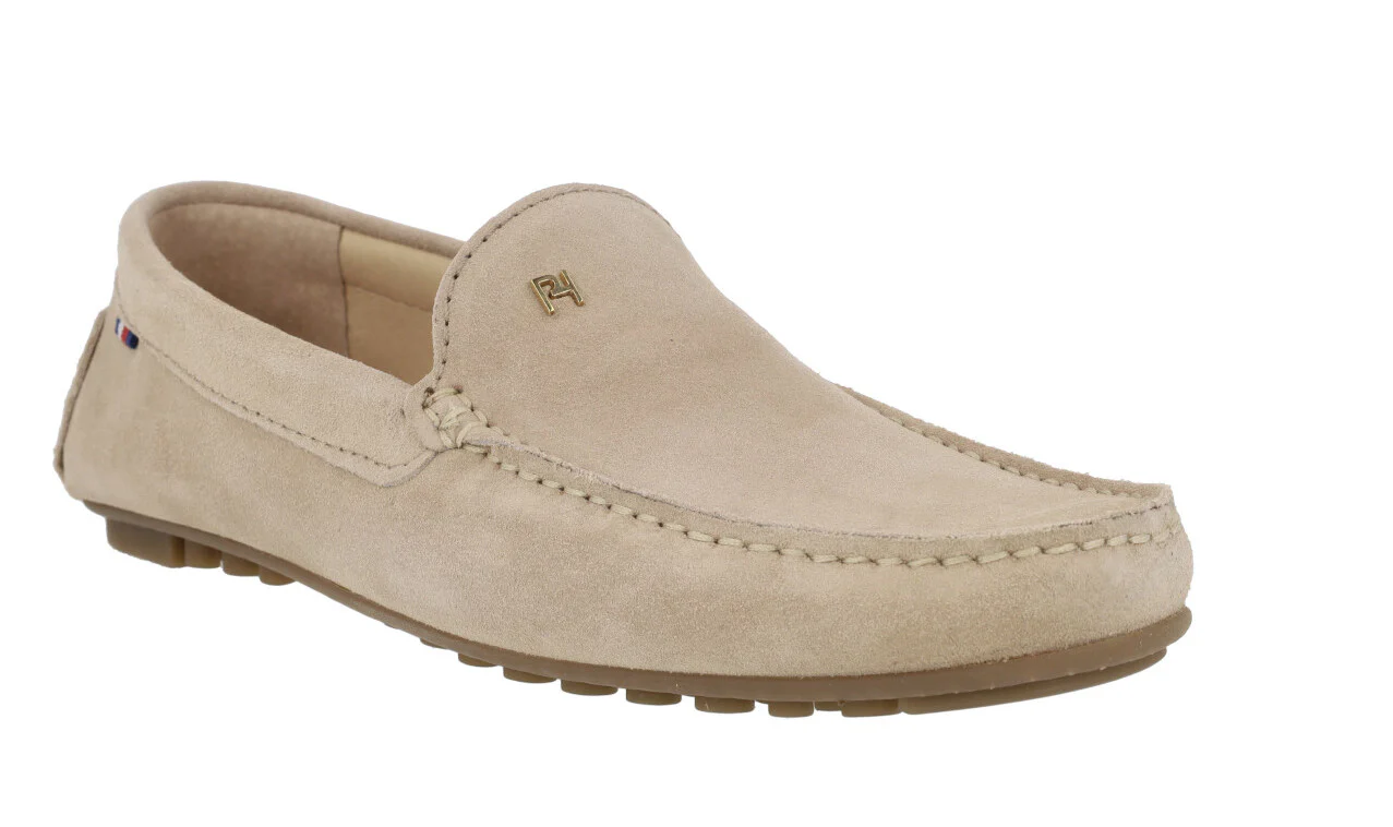 Zapatos para hombre de la marca Paco Herrero modelo 03901. Zapatos estilo kiowas, elaborados en piel serraje en color beige o azul marino. Logo metálico Paco Herrero en la pala. Interiores de piel. Piso de goma estilo conductor.