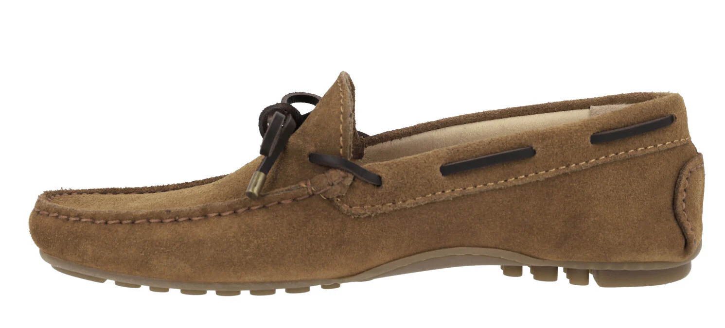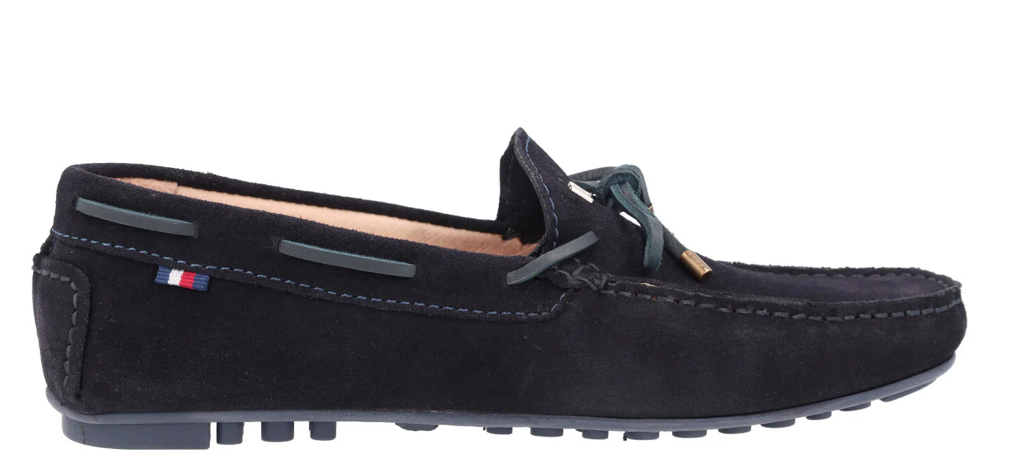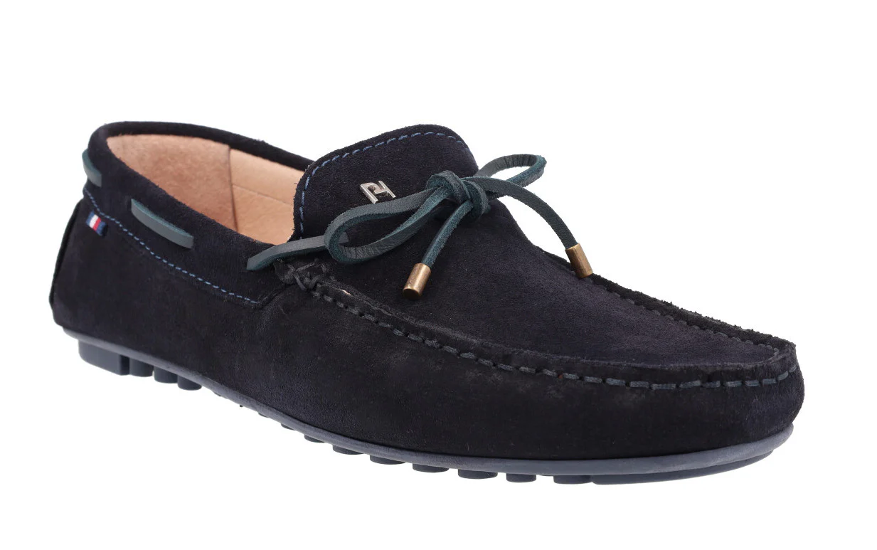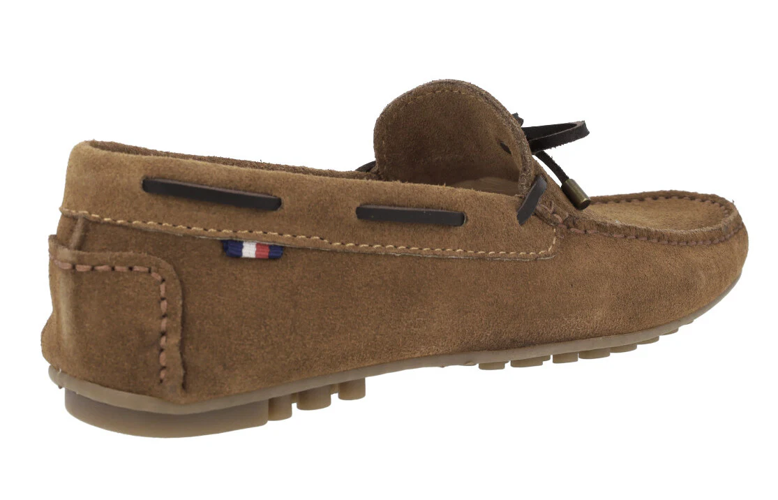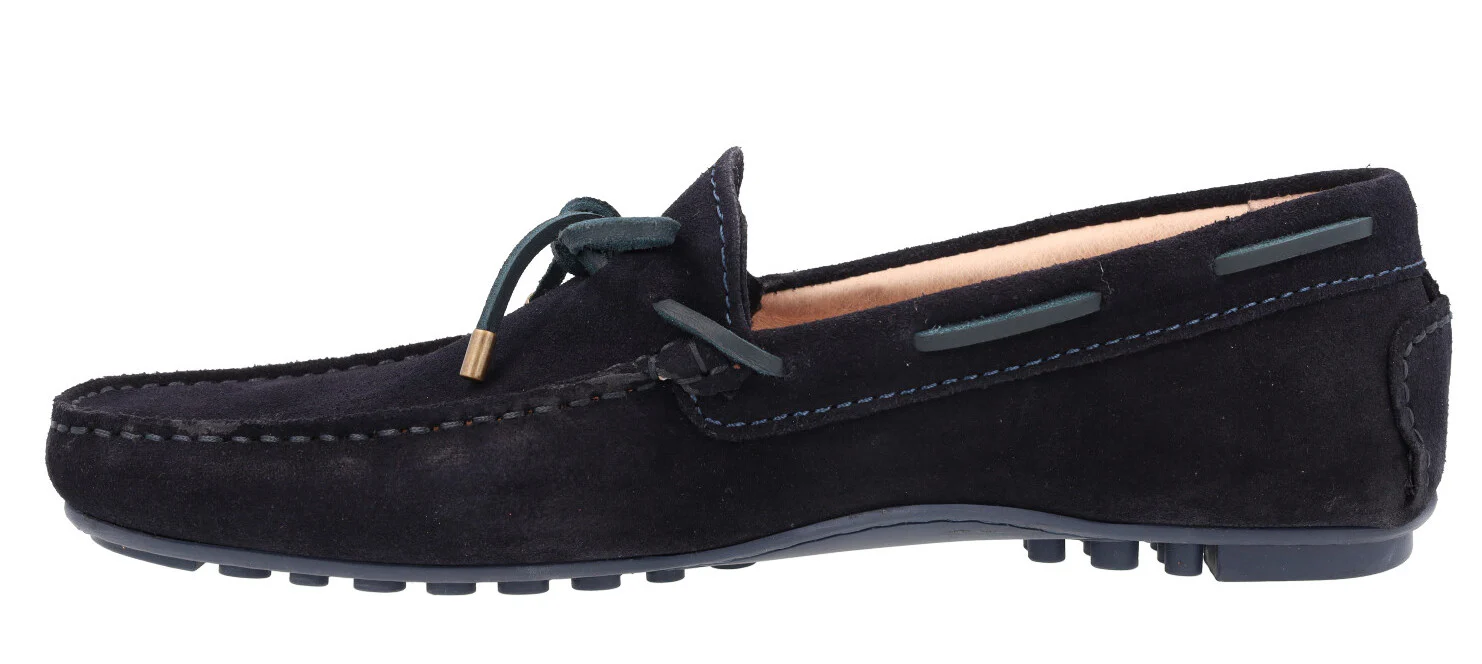 Kiowas de serraje para hombre de la marca Paco Herrero, modelo 03904, disponibles en color marrón cuero o azul marino. Kiowas de serraje con adorno de lazo y pasados en piel. Interiores en piel. Piso de goma estilo conductor.