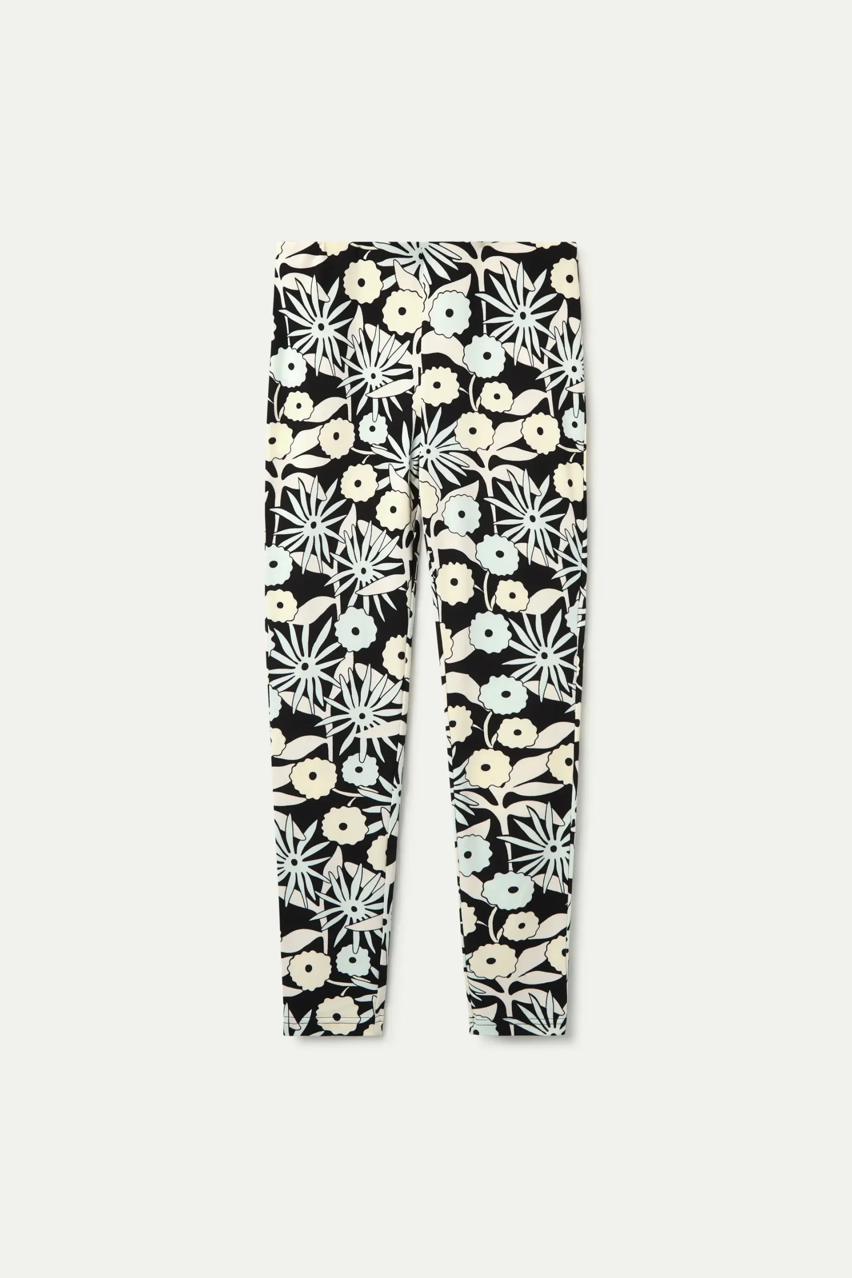 Leggings de tejido jersey con estampado tofu. Cintura elástica de tiro medio y pernera recta.
