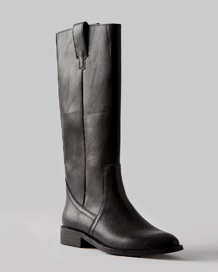 Bota plano tipo cartujano con caña ancha. Tirador en los laterales. Acabado en punta redondeada. Cremallera en el lateral interior.