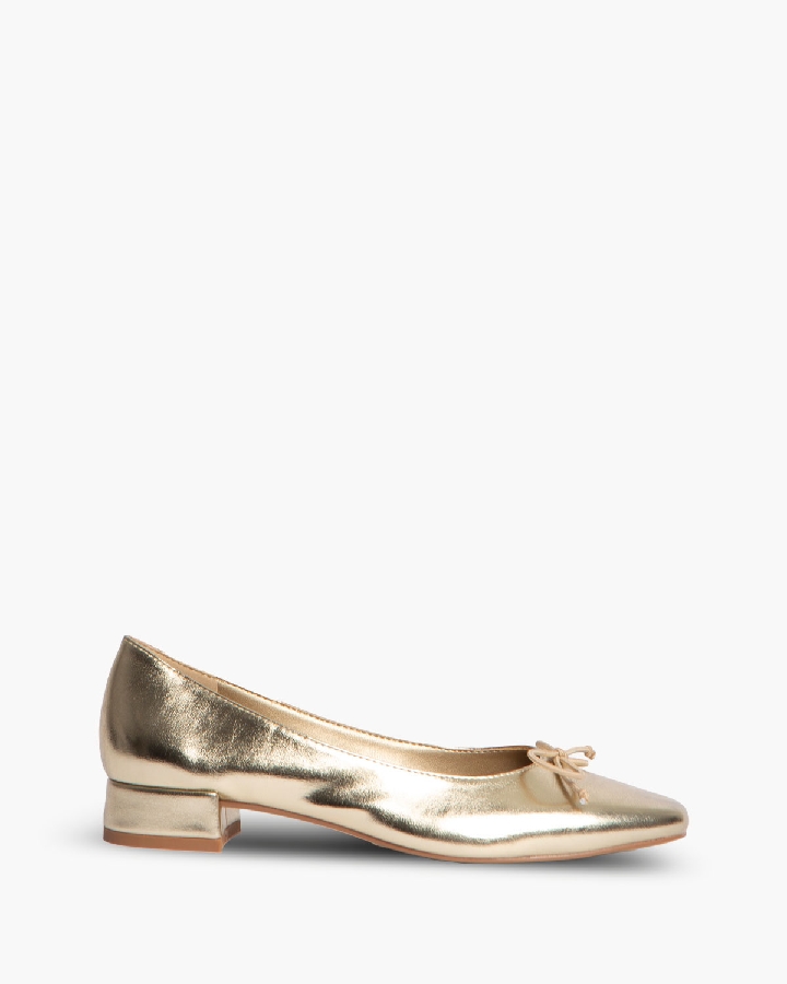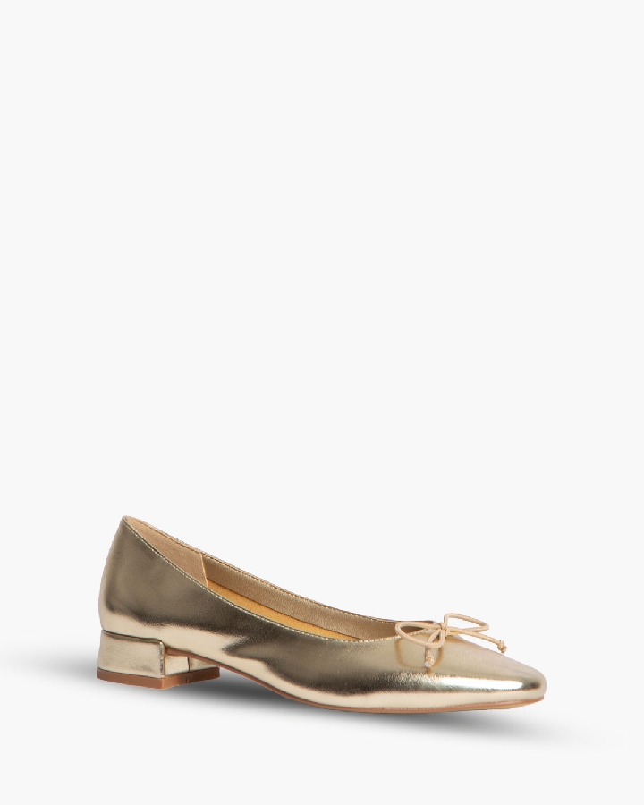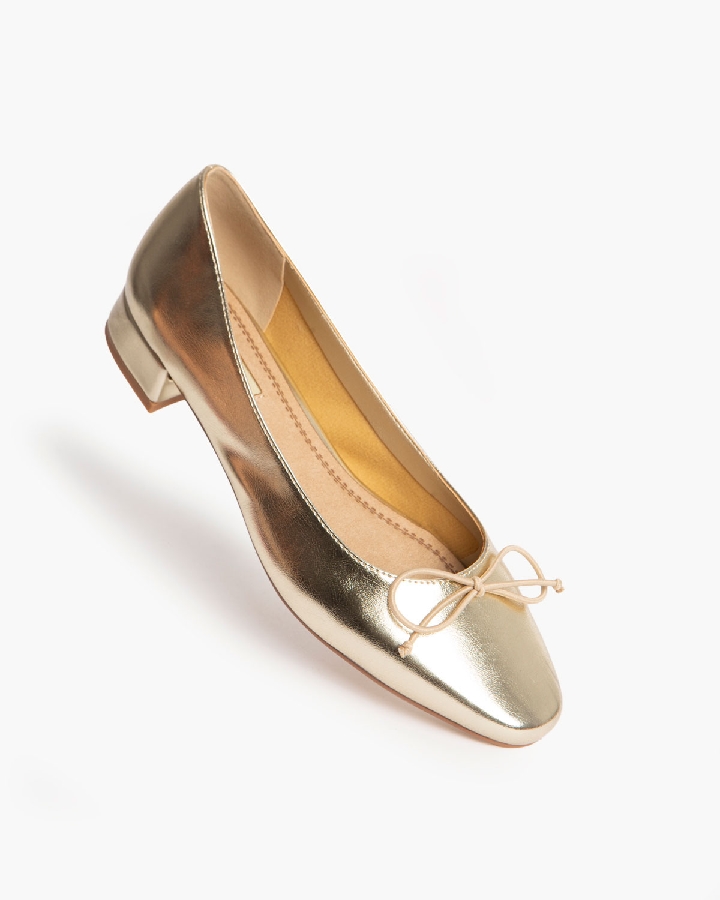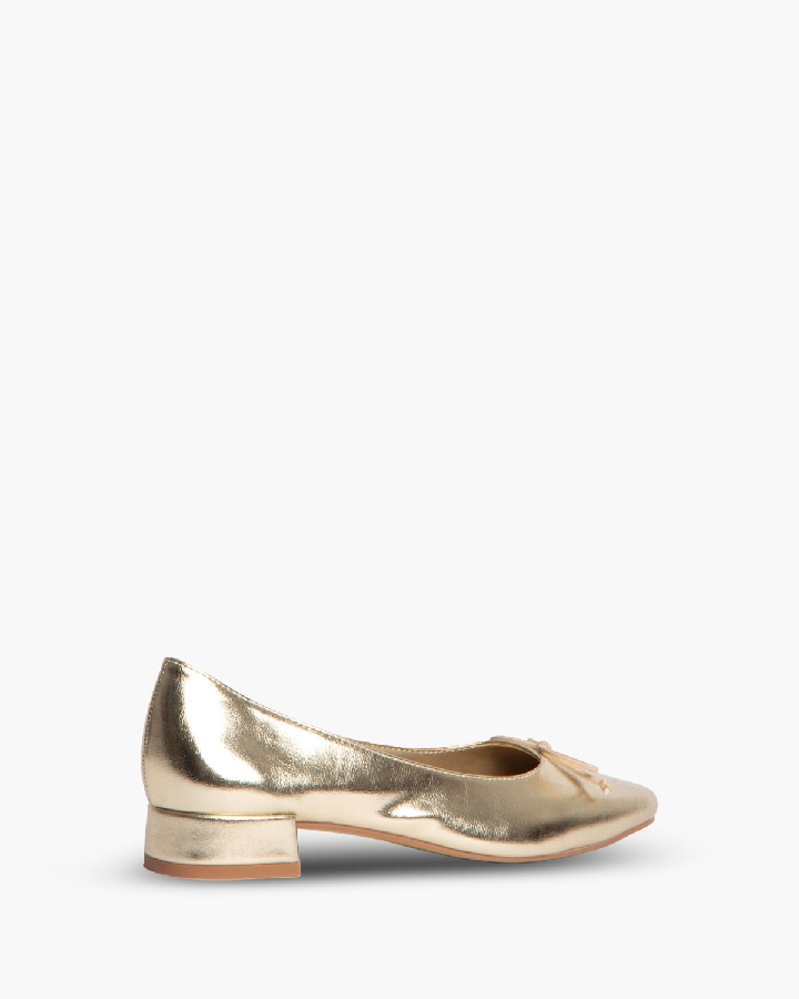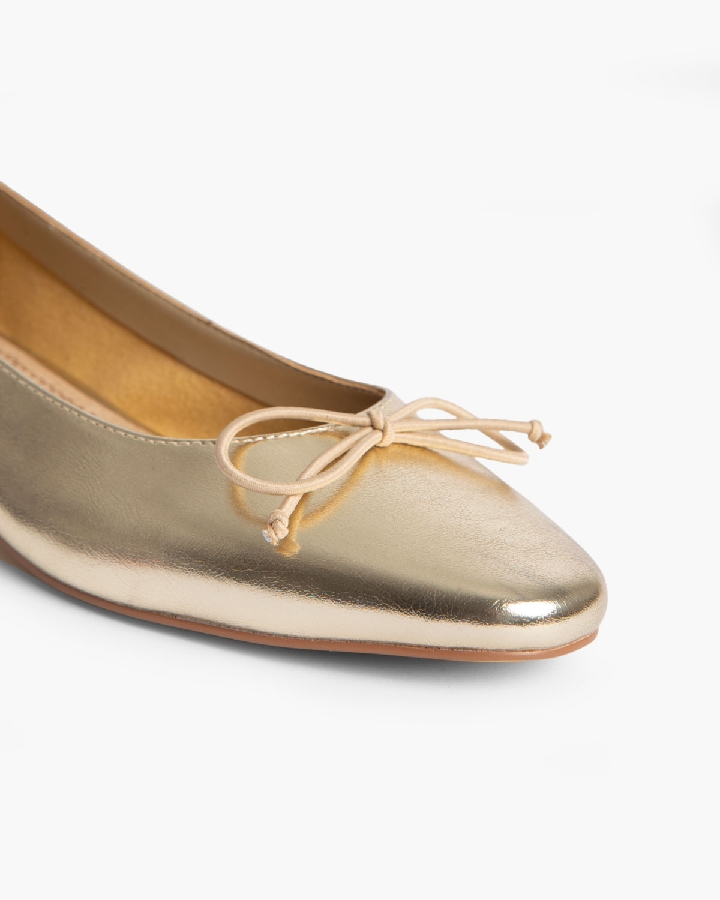 Bailarina de tacón bajo con corte efecto piel. Detalle de lazo en la parte delantera y borde ribeteado.