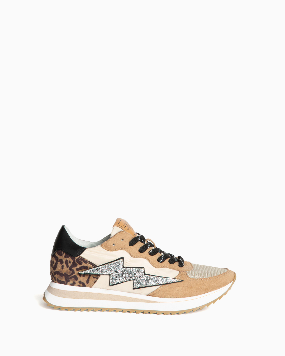 Zapatilla deportiva tipo bamba. Cierre mediante cordones de siete pasadas. Corte en combinación de materiales. Inspiración retro.