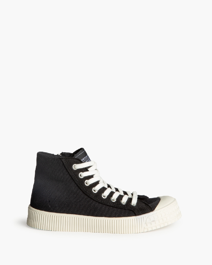 Botín deportivo estilo retro. Cierre mediante cordones de ocho pasadas y cremallera en la parte interior.