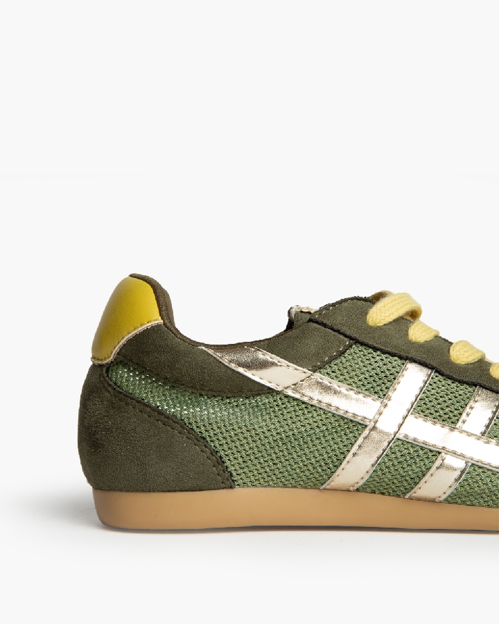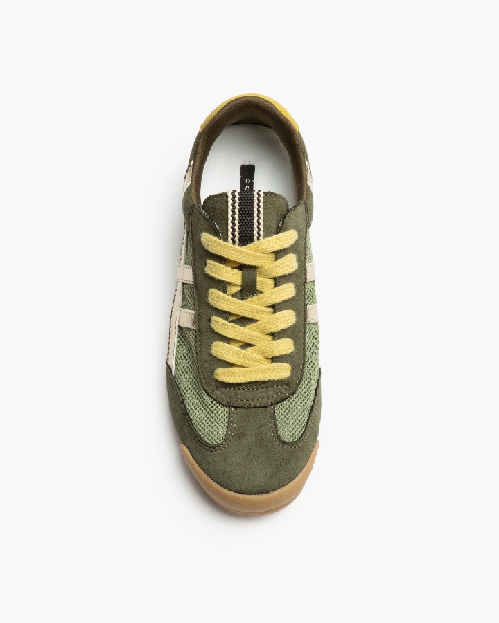 Zapatilla deportiva estilo retro en combinación de materiales. Cierre mediante cordones de siete pasadas.