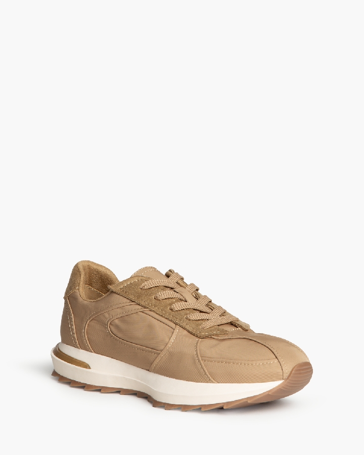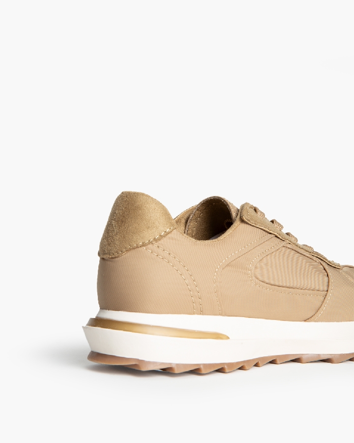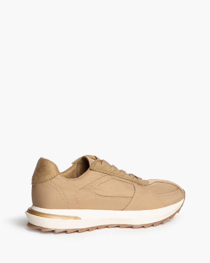 Zapatilla deportiva, estilo running. Suela dentada y cierre mediante cordones de cinco pasadas.