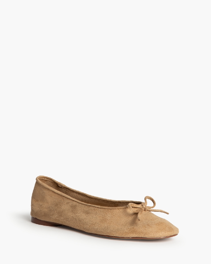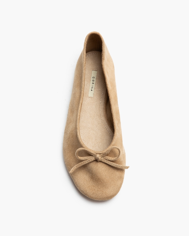 Bailarina plana. Punta rendonda, detalle de lazo en la parte delantera.