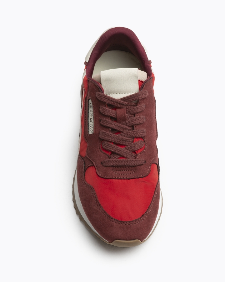 Zapatilla deportiva estilo retro. Cierre mediante cordones de seis pa-sadas. Suela dentada. Corte en combinación de materiales y colores.