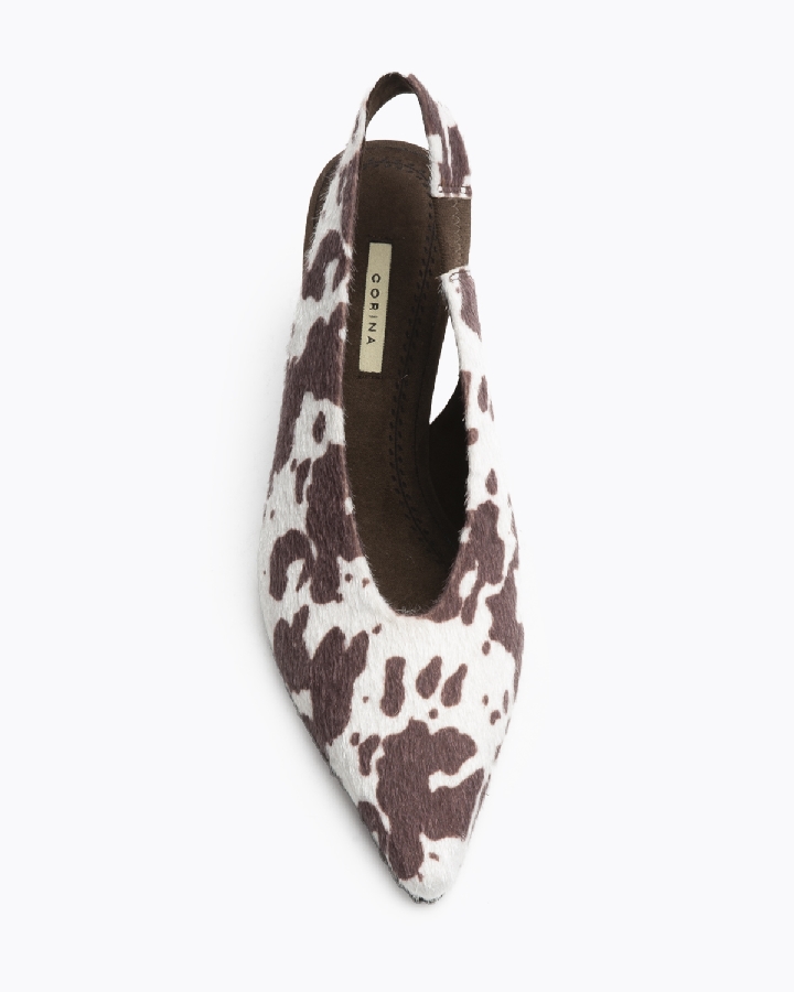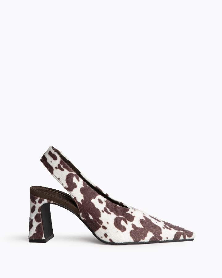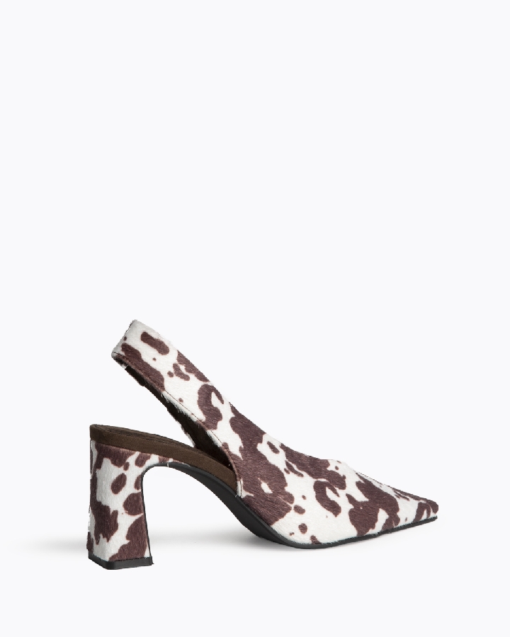 Salón destalonado. Tacón ancho corte en pico, acabado en punta.