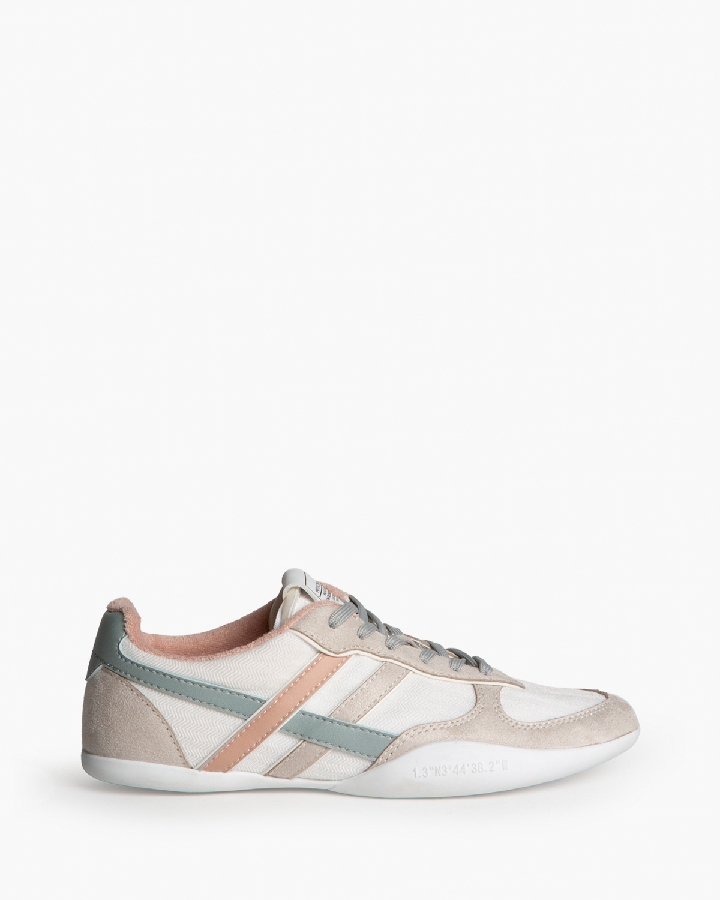 Zapatilla deportiva estilo retro en combinación de materiales. Cierre mediante cordones de seis pasadas.