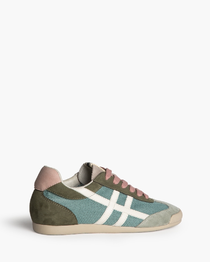 Zapatilla deportiva estilo retro en combinación de materiales. Cierre mediante cordones de siete pasadas.
