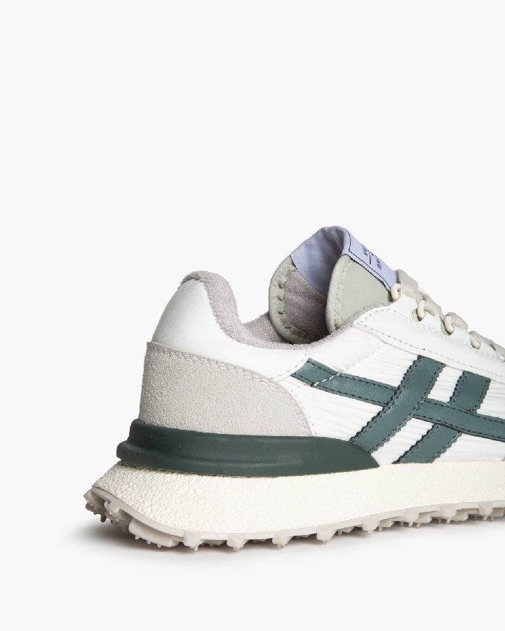 Zapatilla deportiva estilo retro en combinación de materiales. Cierre mediante cordones de cinco pasadas. Suela dentada.