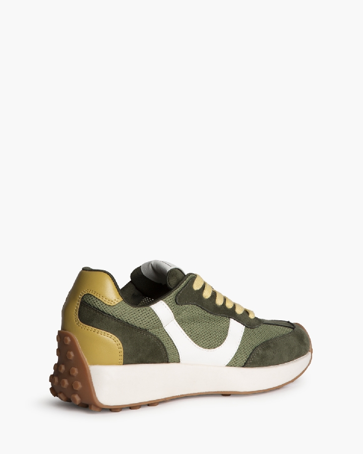 Zapatilla deportiva estilo running. Cierre mediante cordones de seis pasadas. Corte de rejilla. Suela dentada.