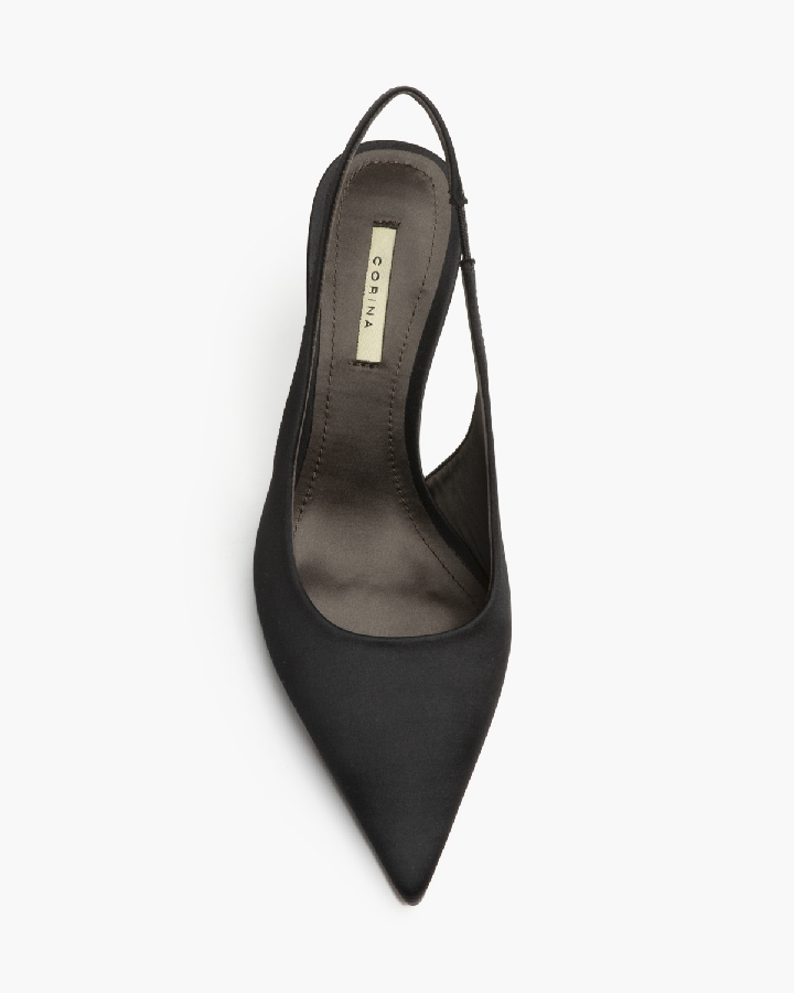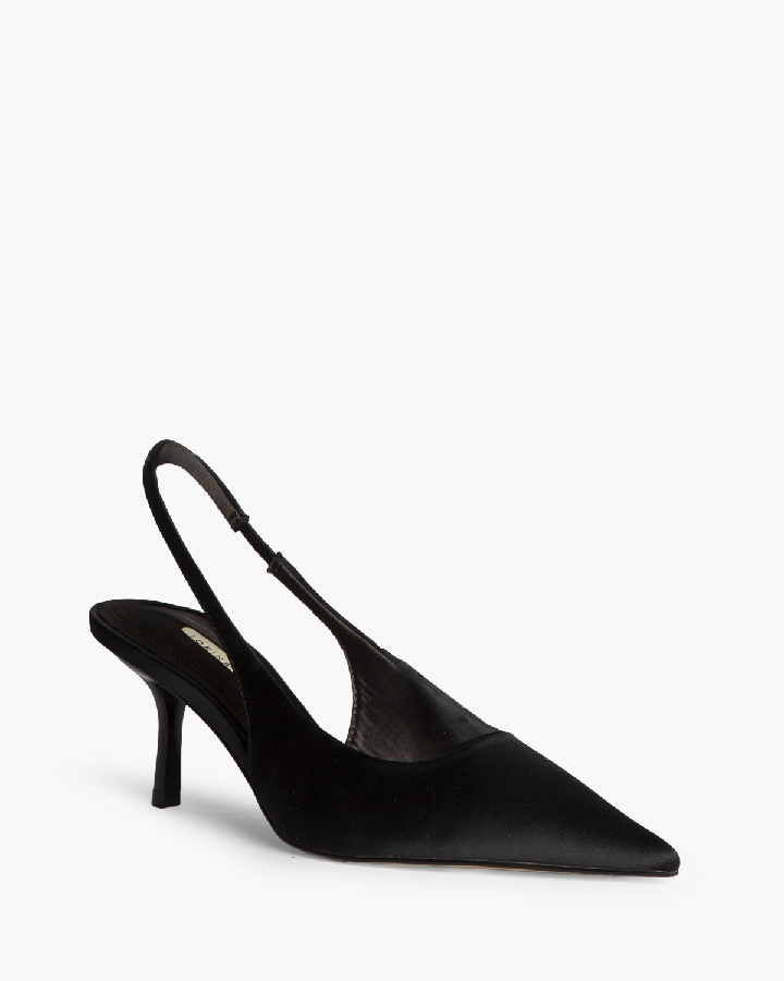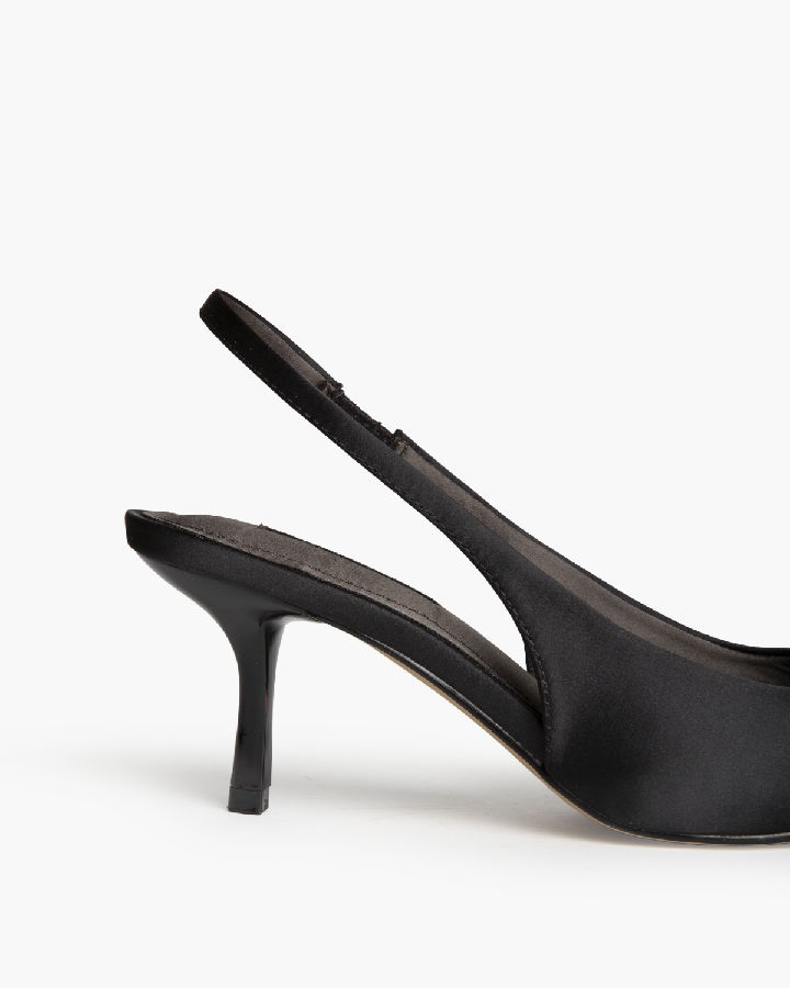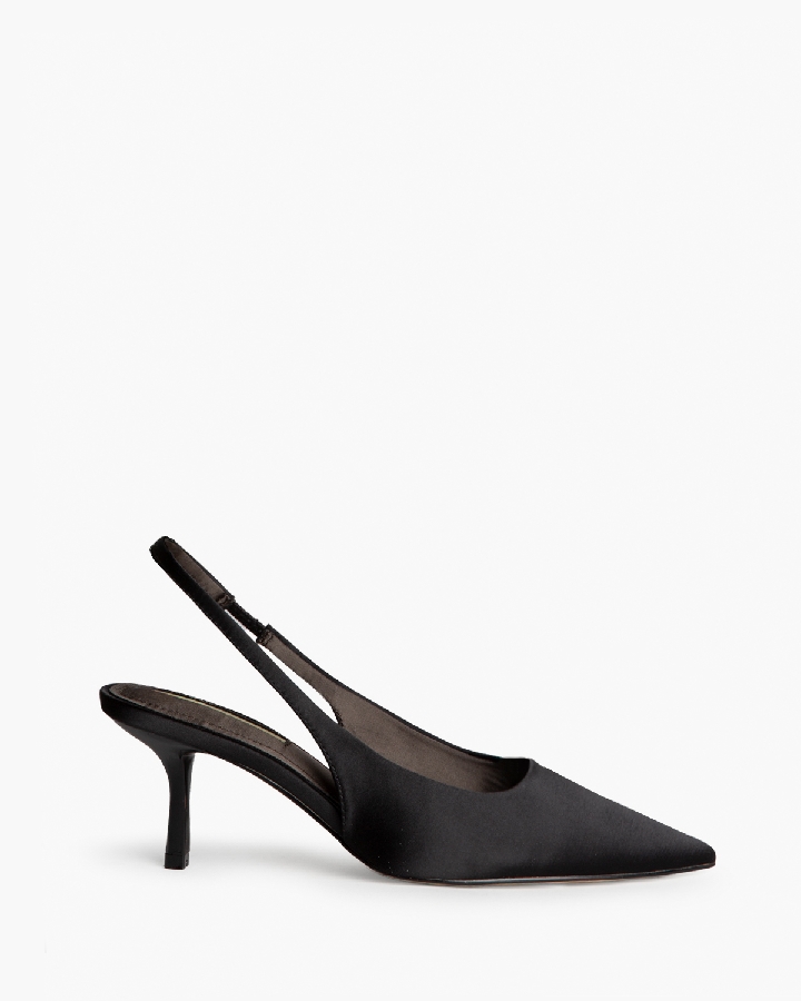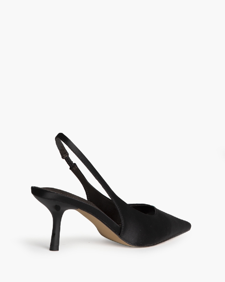 Salon destalonado de tacón medio. Acabado en punta, escote redon-do. Tira trasera con pieza elástica.