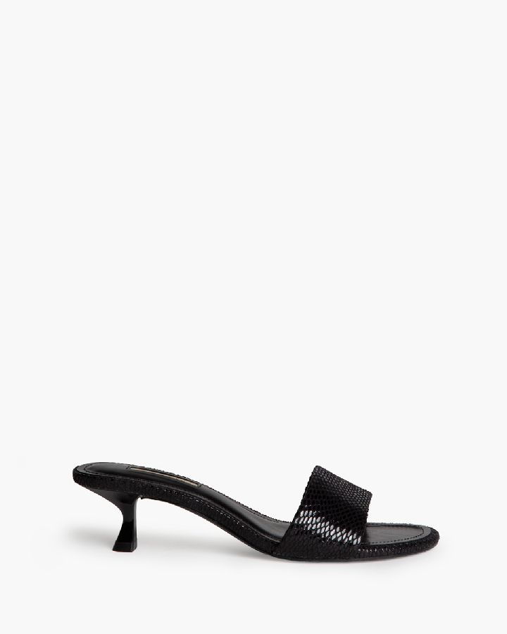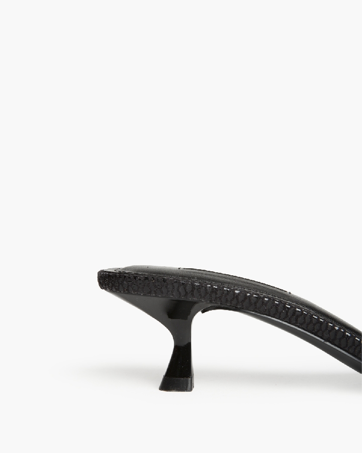 Sandalia de tacón bajo, pala ancha. Acabado en punta redonda.
