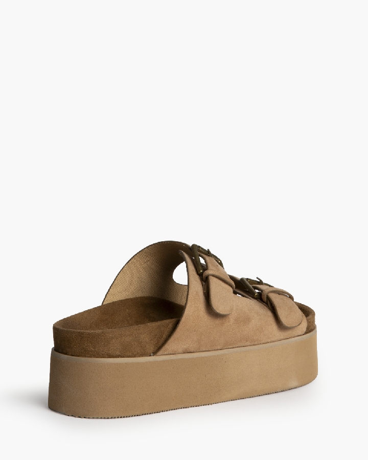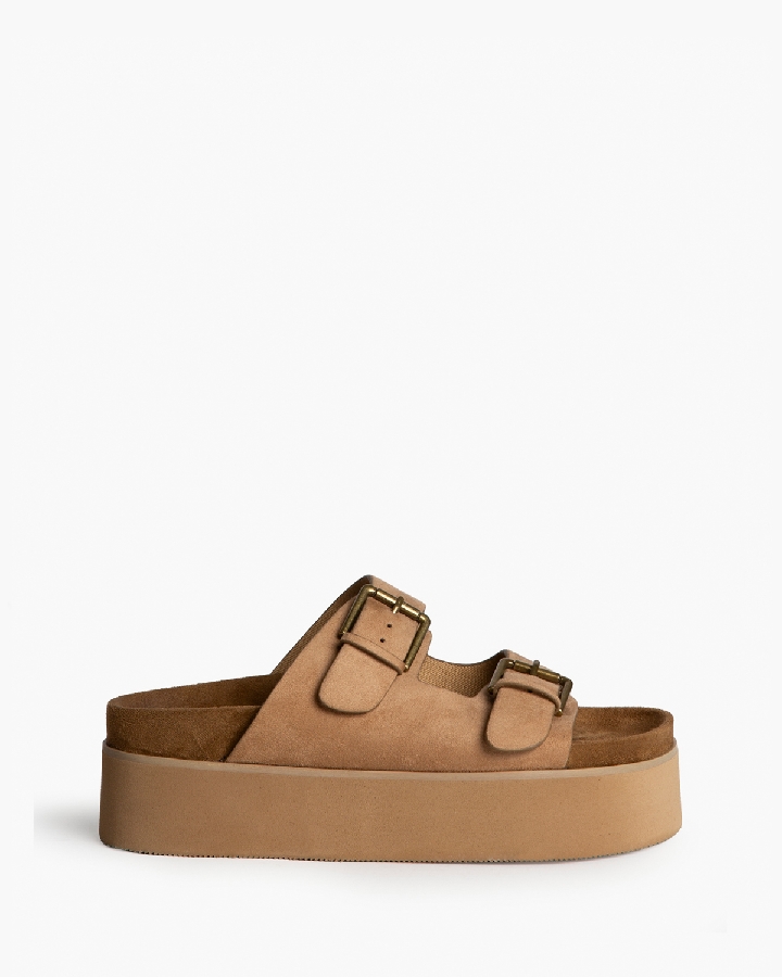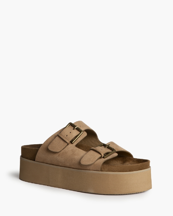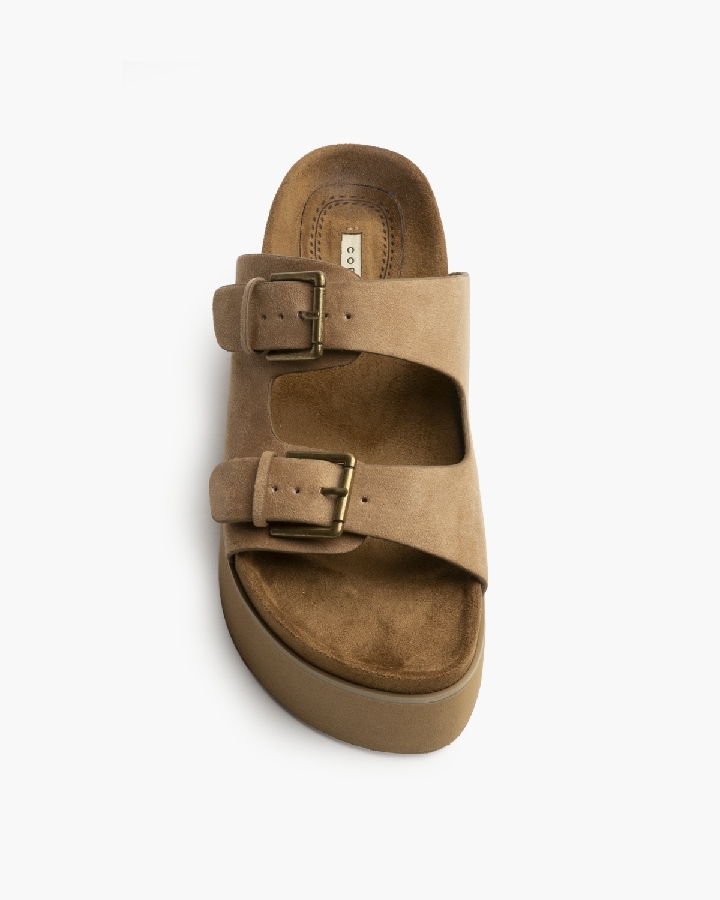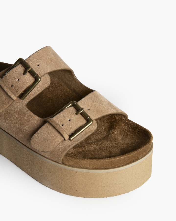 Sandalia de plataforma. Suela ergonómica y corte con dos hebillas.