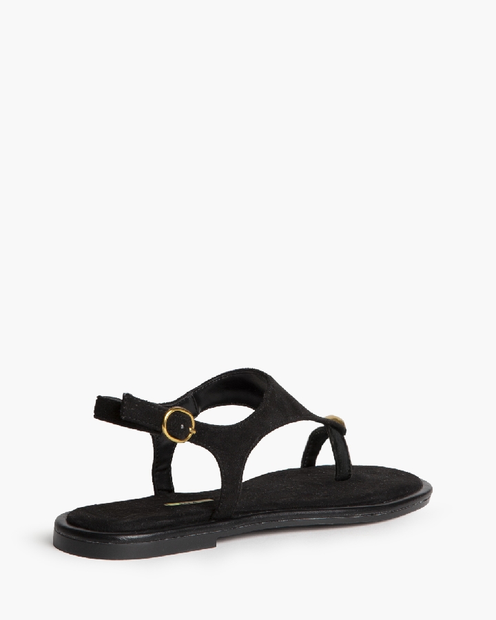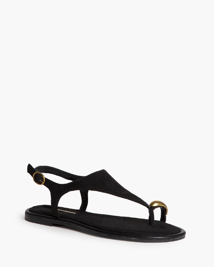 Sandalia plana, con detalle de anillo. Cierre mediante hebillas en el lateral exterior.