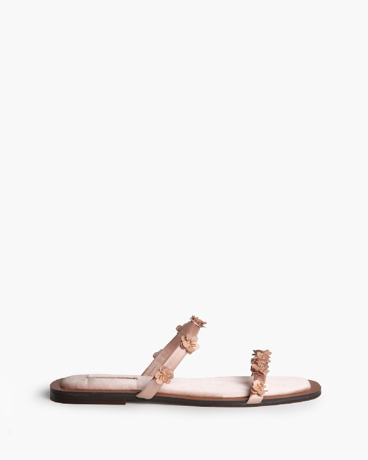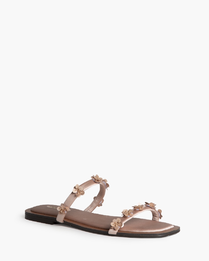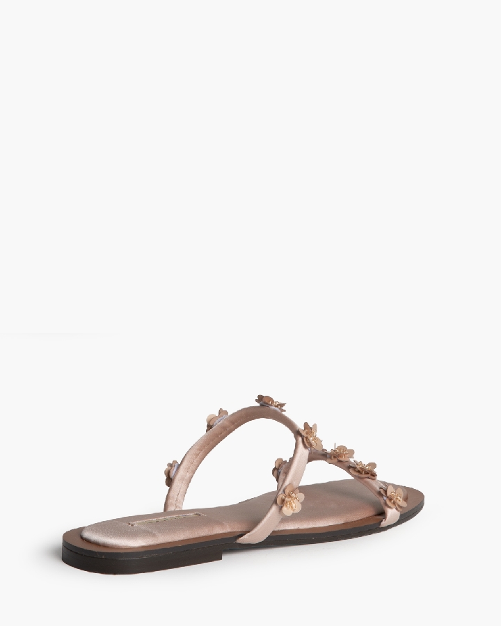 Sandalia plana. Detalle de flores y abalorios. Suela acolchada.