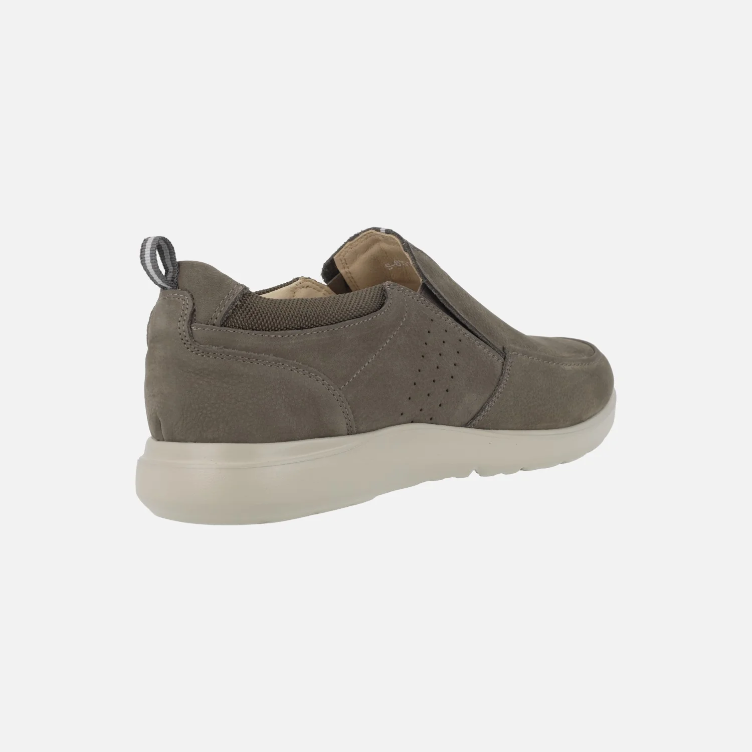 Mocasines confort de la marca G Comfort modelo S-8951-G. Mocasines de calce ancho, elaborados en piel nobuck color taupe, con elásticos laterales. Detalle de tirador trasero para facilitar el calce. Interiores forrados de piel, con plantillas extraíbles. Piso de goma.