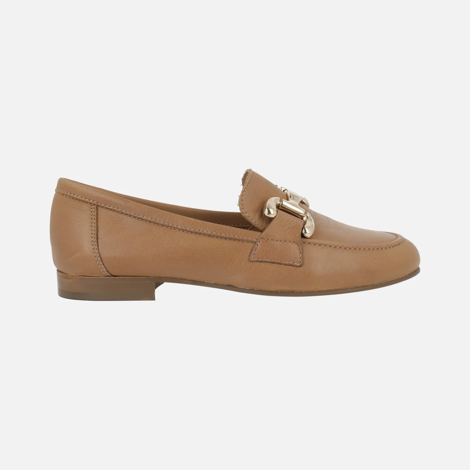 Mocasines de piel de la marca Lince modelo 41072 camel. Mocasines de piel camel con adorno metálico dorado en la pala. Interiores forrados de piel. Piso sintético con tacón de 1,5 cm de altura. Made in Spain.