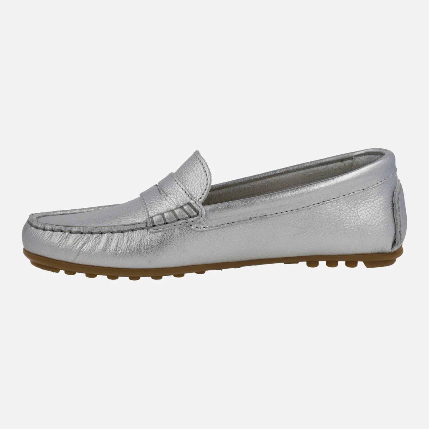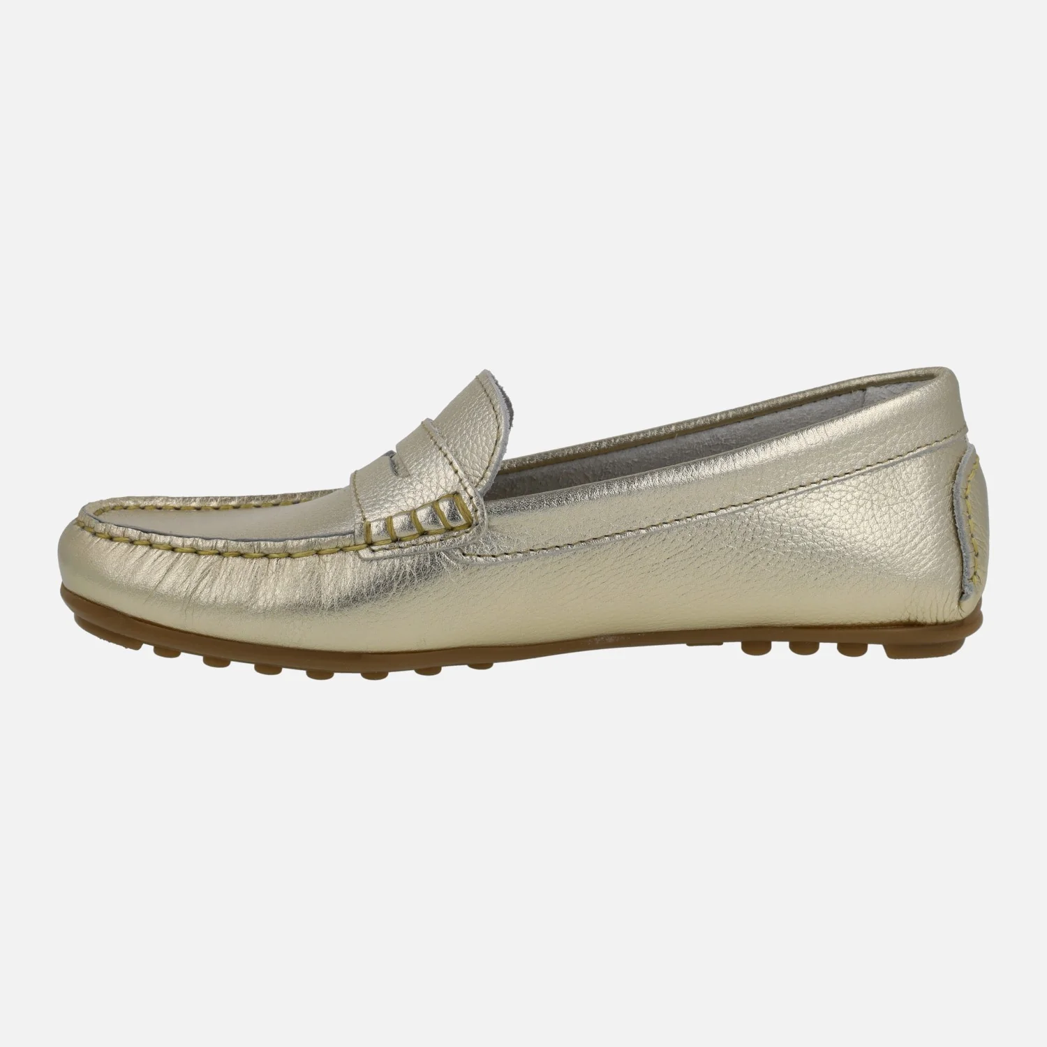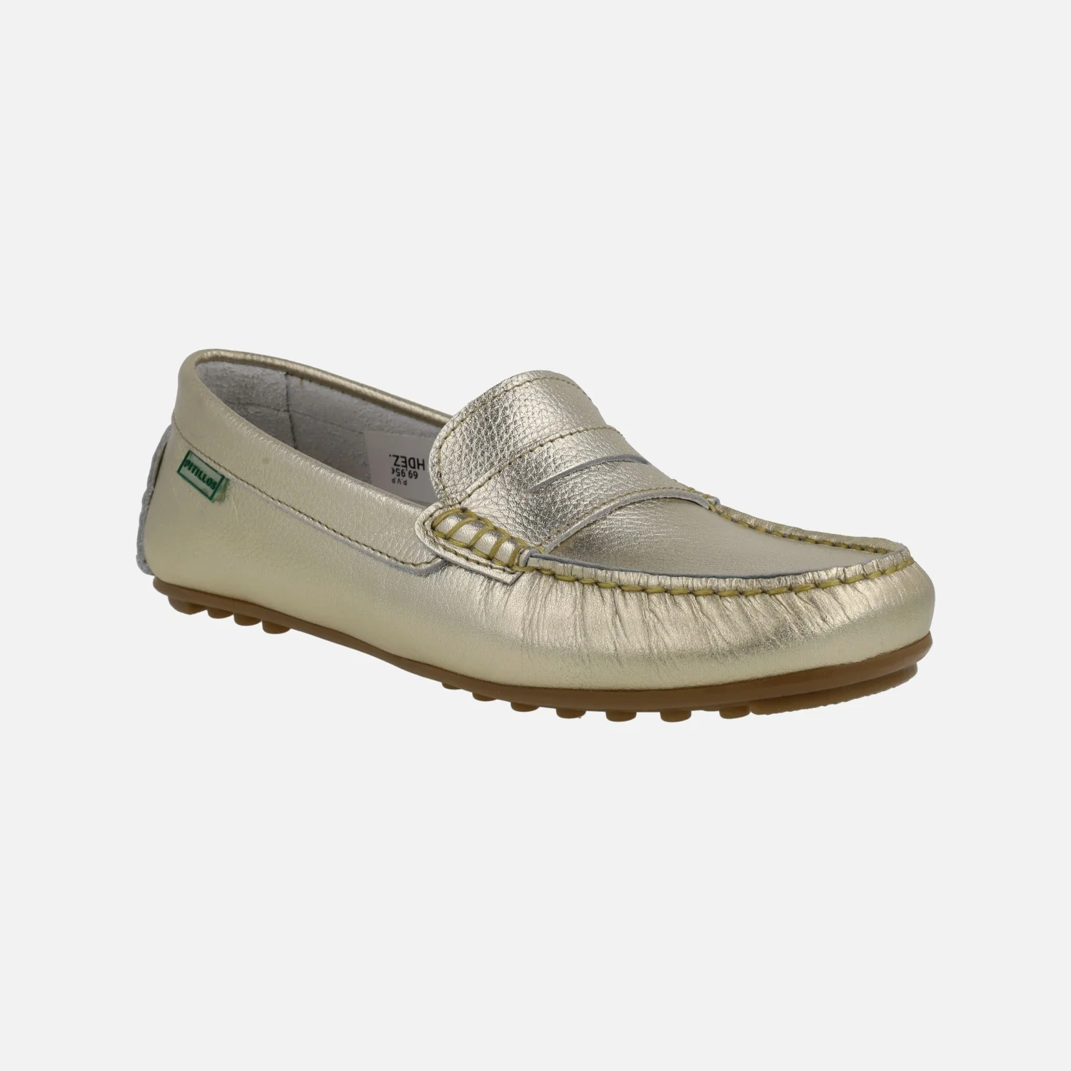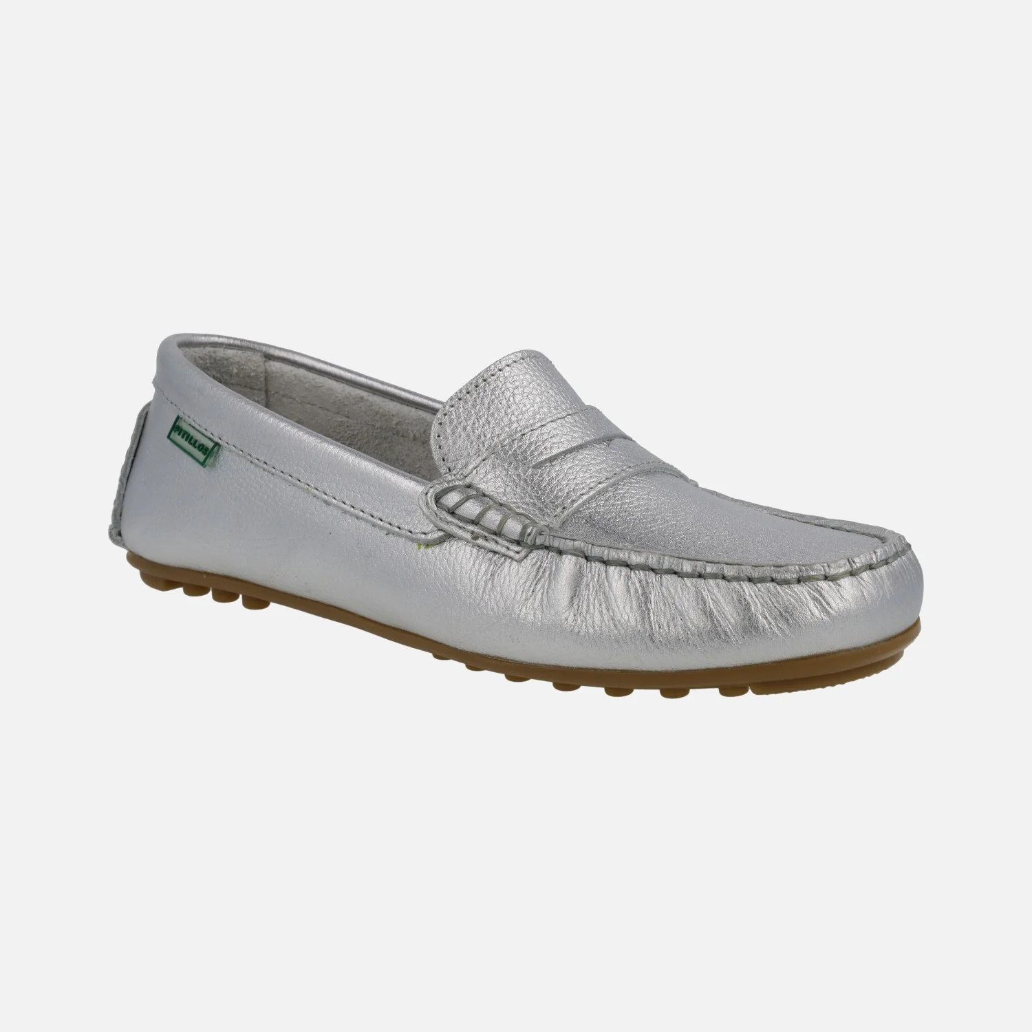 Mocasines para mujer de la línea Silvia Hernandez del grupo Pitillos, modelo 3812, disponible en plata y en oro. Mocasines de piel, con adorno de antifaz y piso plano de goma. Interior y planta de piel. Made in Spain.