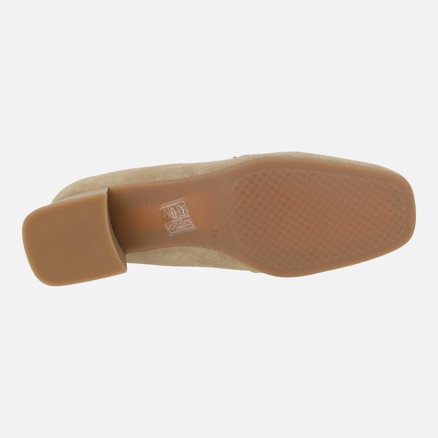 Sé el primero en valorar “Mocasines de tacón en serraje camel con adorno dorado”