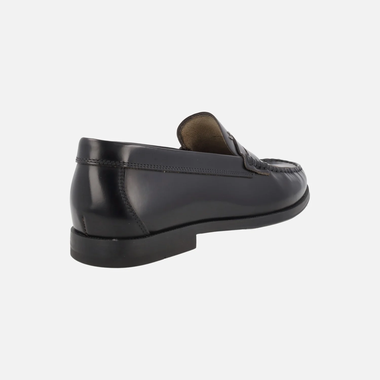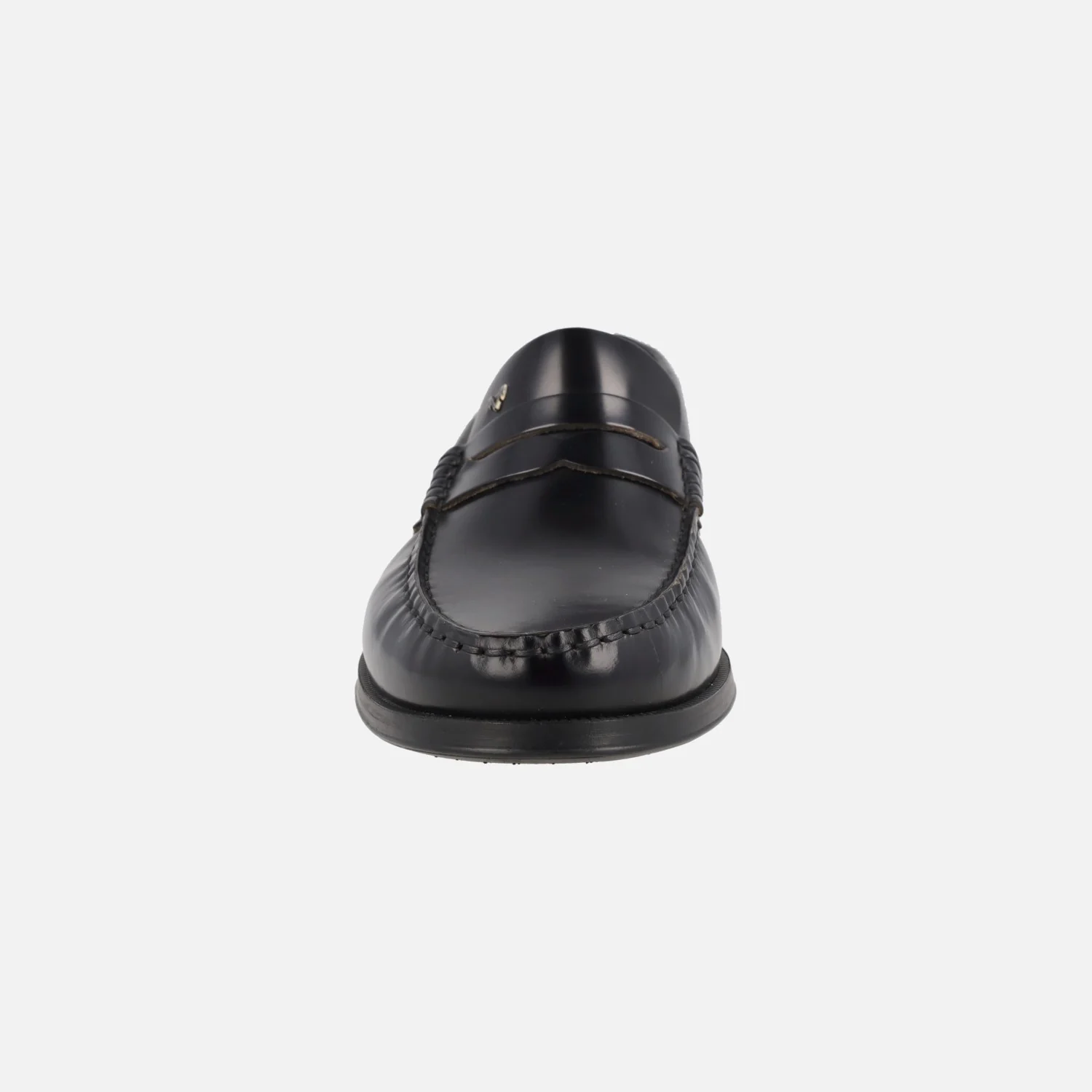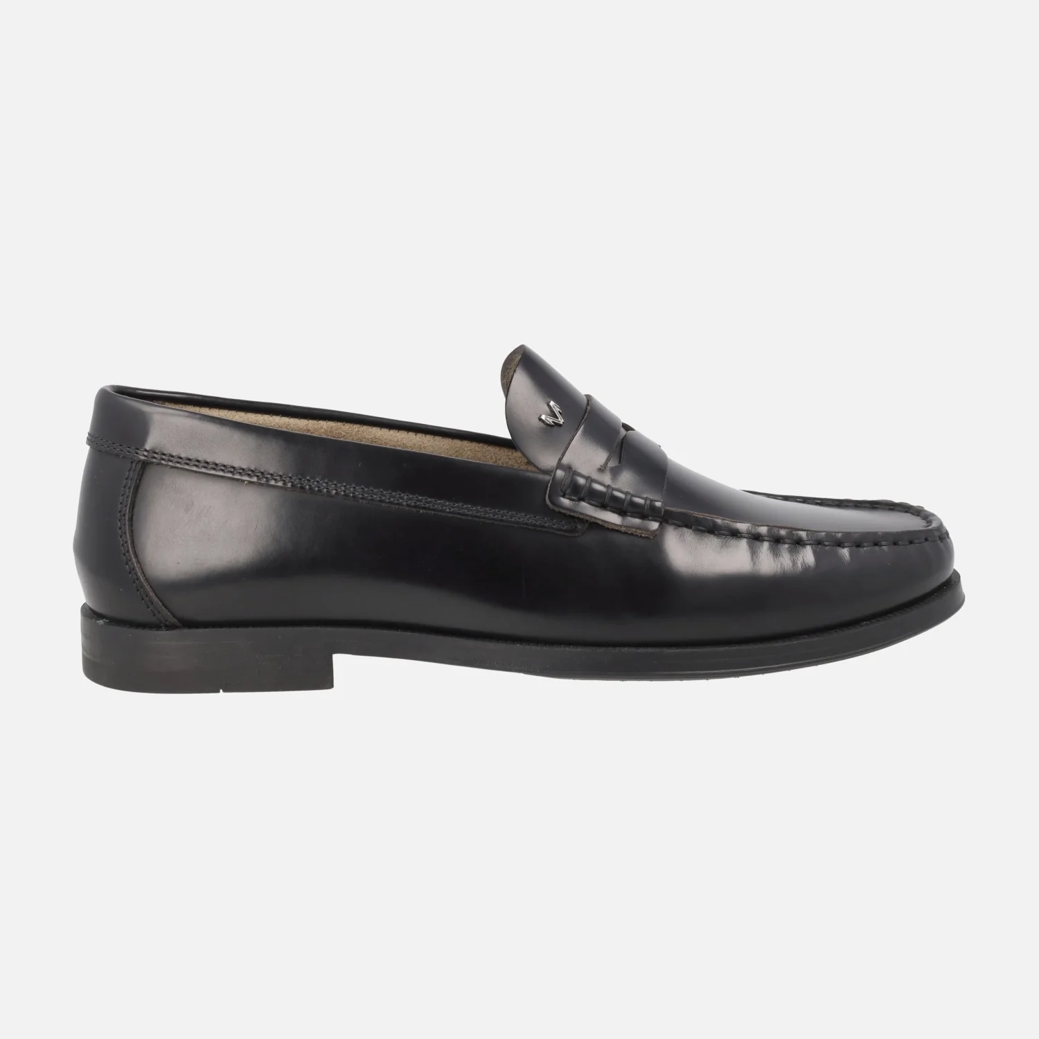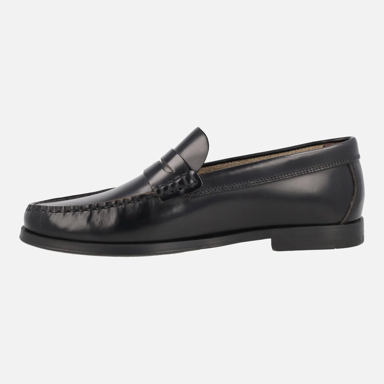 Zapatos mocasines con antifaz de la marca Martinelli modelo Forthill 1623-2761N Black. Zapatos elaborados en piel florentik (brillo) en color negro, adorno de antifaz a nivel del empeine. Logo metálico Martinelli en la parte superior exterior. Interiores en piel. Piso sintético.