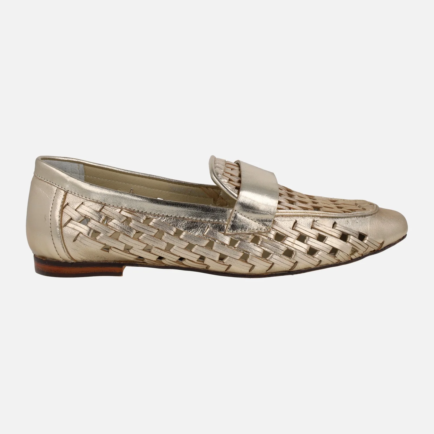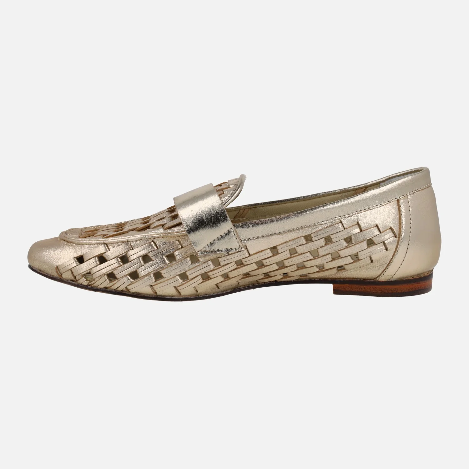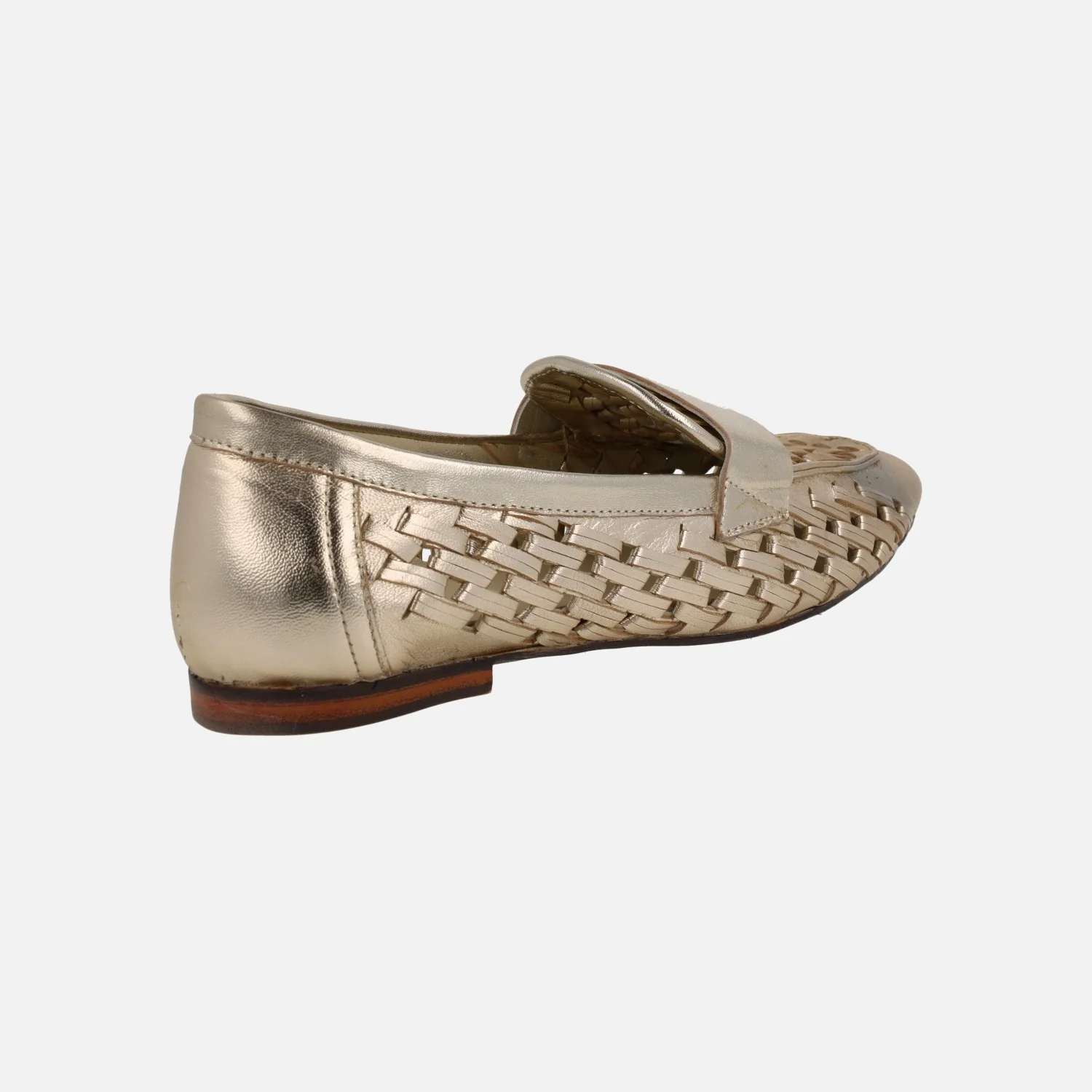Mocasines en piel trenzada metalizada color oro