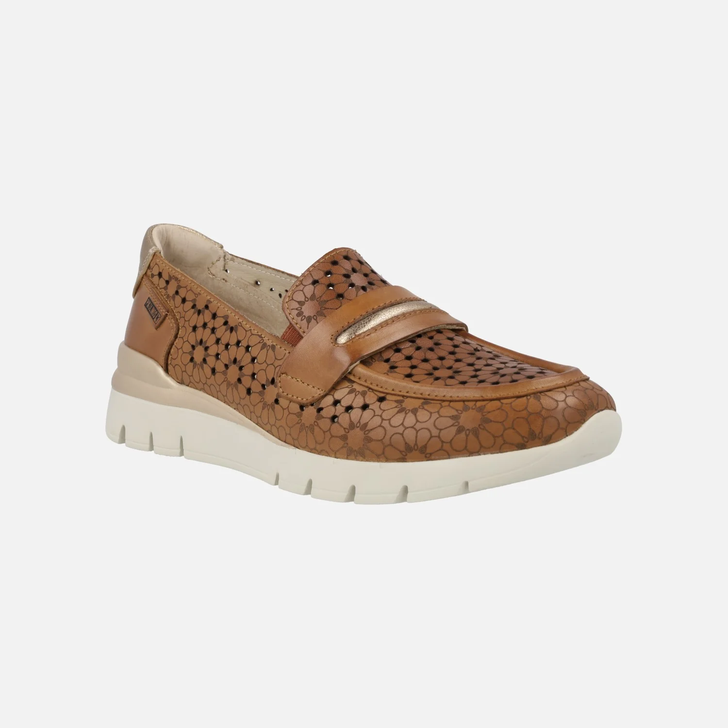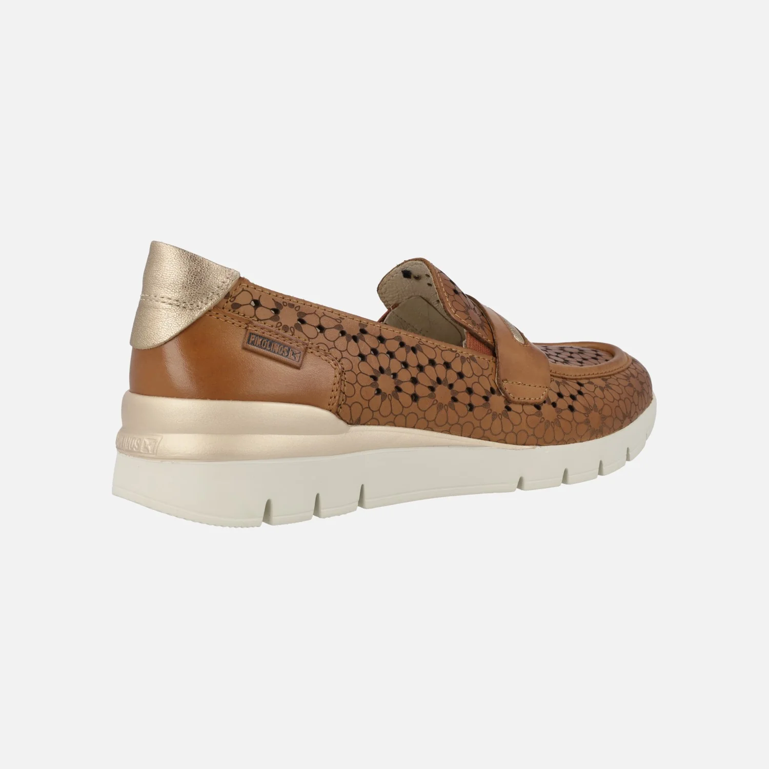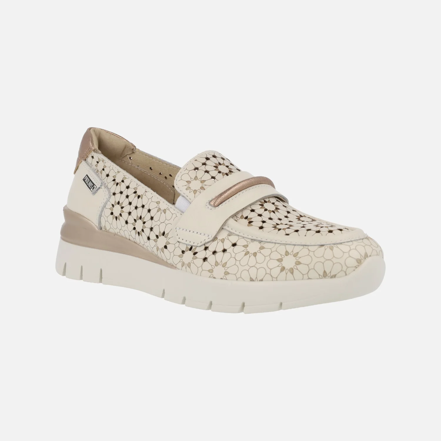 Enamorada de los nuevos mocasines para verano Pikolinos Cantabria W4R-6518. Disponibles en nata (beige clarito), brandy (cuero) o stone (metalizado acero). Mocasines troquelados con antifaz en la pala. Detalle contrastado de color en la talonera. Muy fresquitos y cómodos, con plantillas extraíbles Memory foam. Suela ligera de goma, de 4 cms de altura en la parte trasera (2 cms parte delantera).