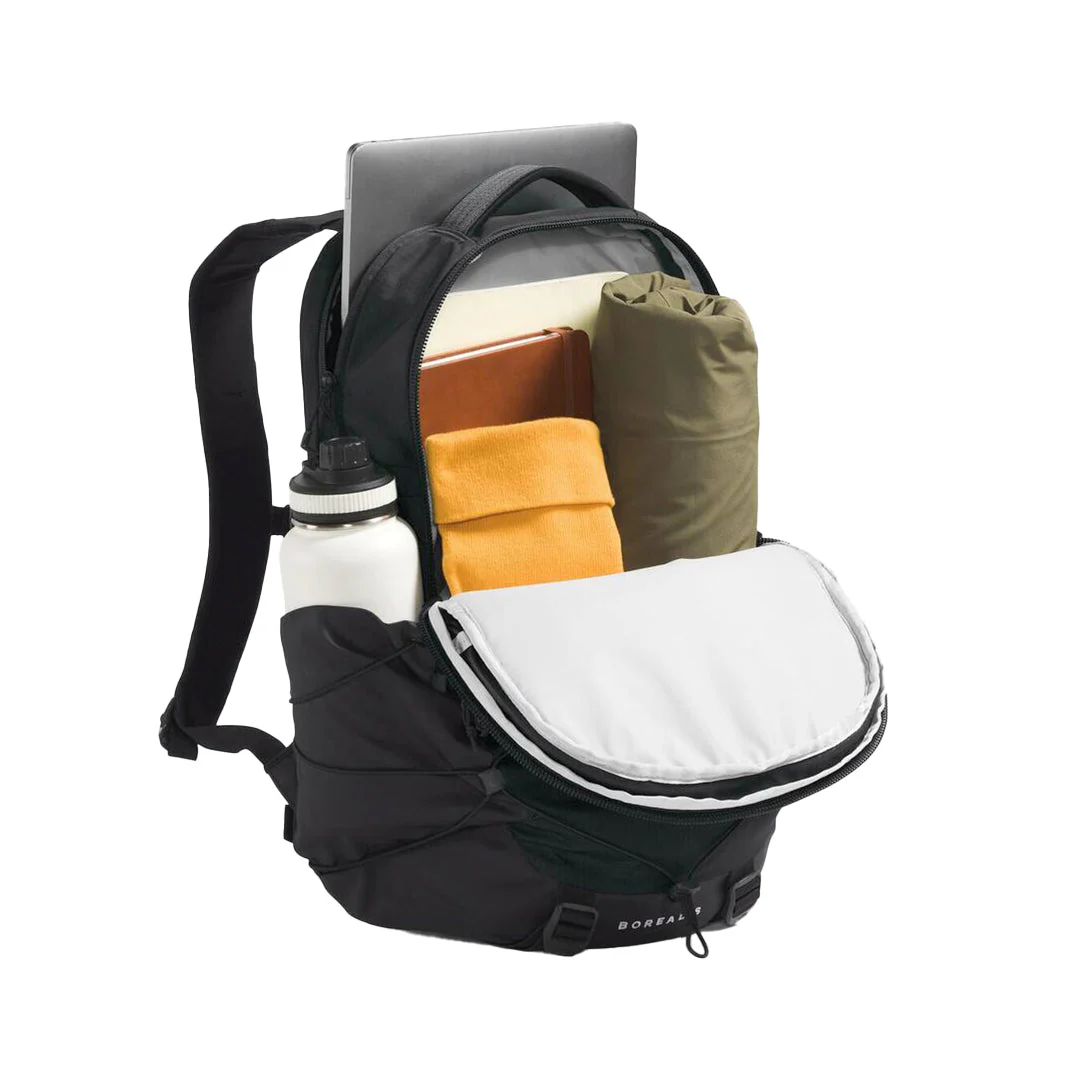 La mochila Borealis fabricada con 100% poliéster tiene un compartimiento para computadora portátil, correas de hombro ajustables con un nuevo sistema para un ajuste y transporte cómodos, mientras que los dos bolsillos externos para botellas se pueden duplicar fácilmente como bolsillos multiusos con acceso rápido a un teléfono inteligente en un lado. El compartimento frontal tiene bolsillos internos con cremallera de seguridad y forro para Tablet, sistema de compresión elástico externo con clip, olsillo externo para gafas de sol, teléfono o llaves y os bolsillos externos para botellas. Cuenta con una capacidad de 28 litros y unas medidas de 30,5 x 49,5 x 16,5 cm.