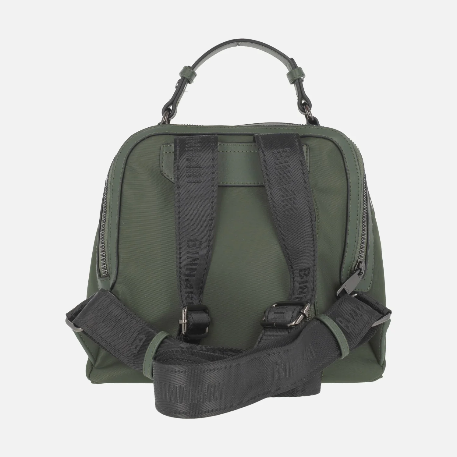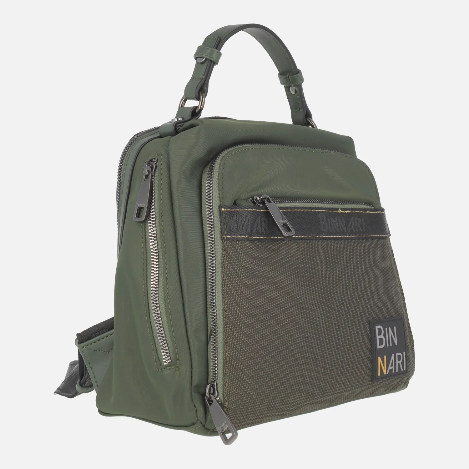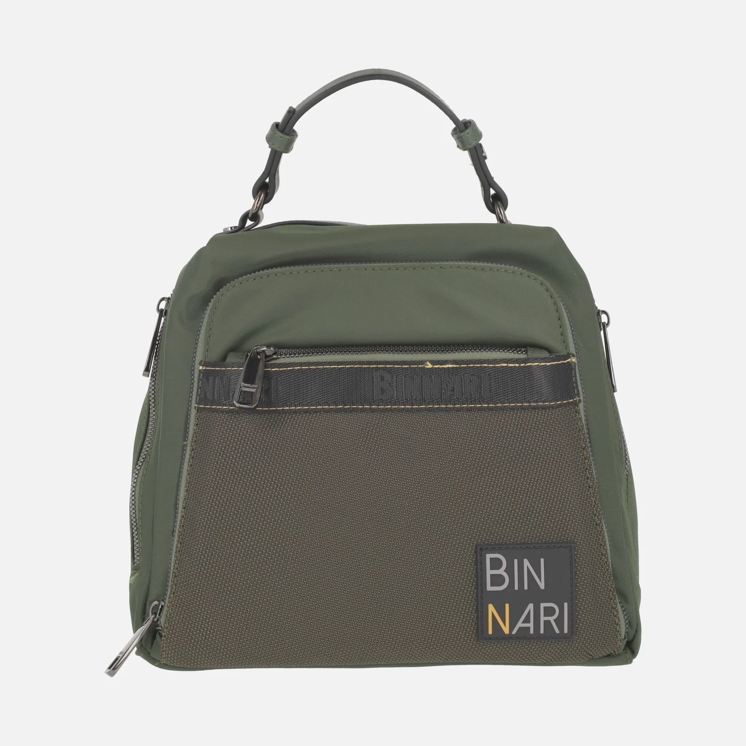 Mochilas de la marca Binnari modelo Córdoba 20270, disponibles en negro y en verde kaki. Mochilas elaboradas en tejido nylon y lona, con dos bolsillos delanteros, dos laterales y uno trasero, todos ellos con cremallera. Asa fija de mano de 9 cms de altura. Asas traseras regulables con hebilla para llevar a la espalda. Cierre principal de cremallera, con interior textil con bolsillos, uno de ellos con cremallera. Medidas aproximadas: 24 cms de alto x 20 cms de ancho superior x 26 cms de ancho inferior x 13 cms de fondo.