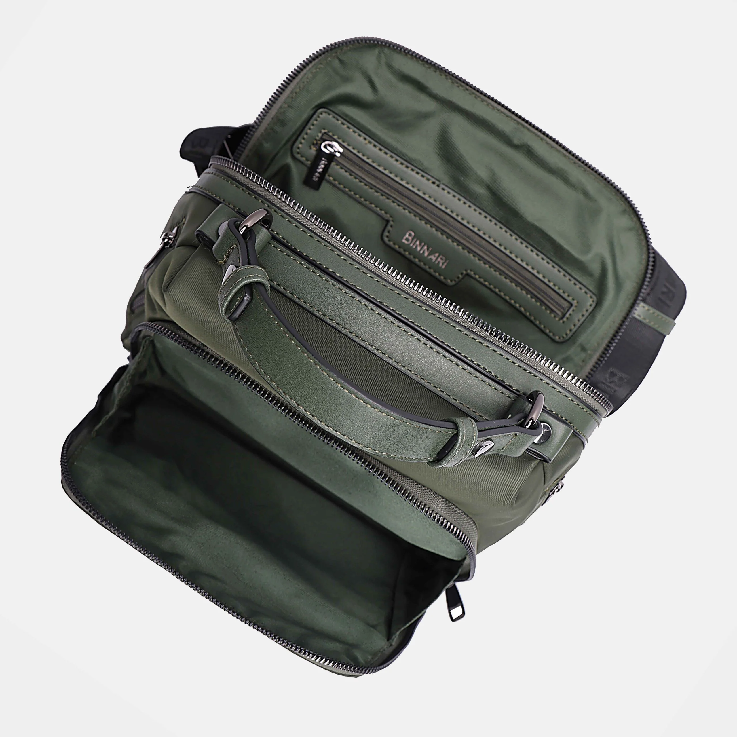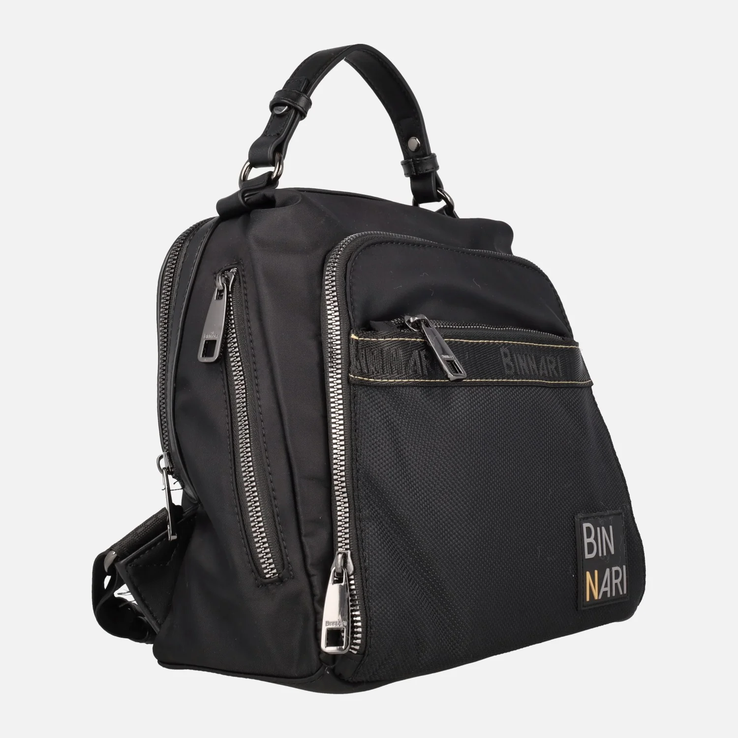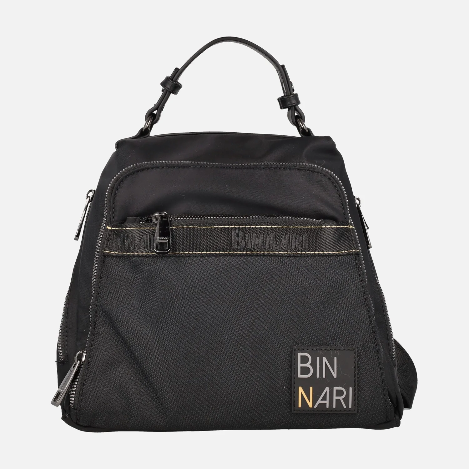 Mochilas de la marca Binnari modelo Córdoba 20270, disponibles en negro y en verde kaki. Mochilas elaboradas en tejido nylon y lona, con dos bolsillos delanteros, dos laterales y uno trasero, todos ellos con cremallera. Asa fija de mano de 9 cms de altura. Asas traseras regulables con hebilla para llevar a la espalda. Cierre principal de cremallera, con interior textil con bolsillos, uno de ellos con cremallera. Medidas aproximadas: 24 cms de alto x 20 cms de ancho superior x 26 cms de ancho inferior x 13 cms de fondo.