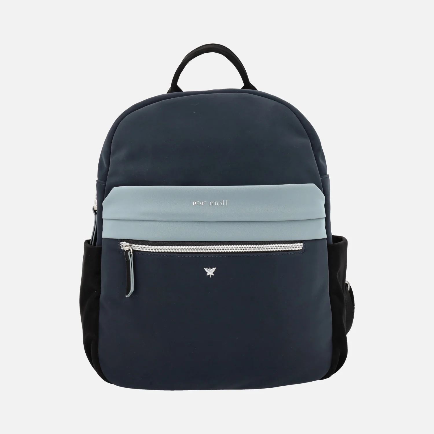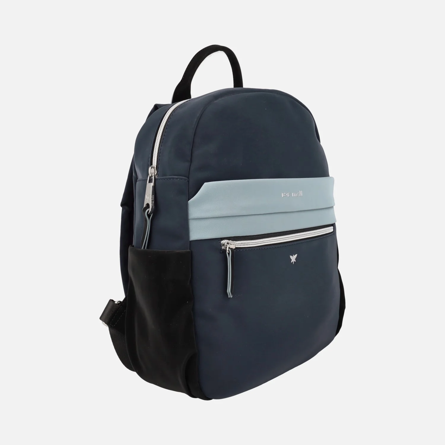 Preciosas mochilas de la marca Pepe moll modelo 252213, disponibles en combinado gris y en combinado azul. Mochilas con exterior en 100% poliuretano. Compartimento principal con cremallera. Bolsillo delantero y trasero con cremallera. Interior textil con bolsillos. Asa fija para llevar de mano. Dos asas para llevar a la espalda, ajustables. Medidas: 34 cm de alto x 30 cm de ancho inferior x 24 cm de ancho superior x 11 cm de fondo.