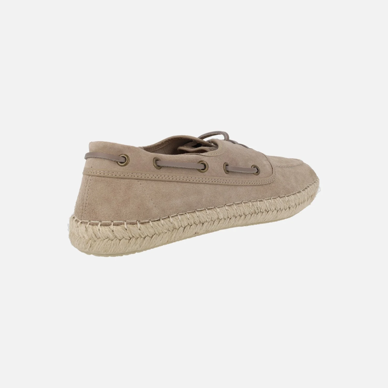 Zapatos naúticos para hombre de la marca Sergio Serrano modelo 100 Lux Taupe. Zapatos naúticos con cordones, con exterior en serraje color taupe, piso de yute y suela de goma. Interiores en tejido, con plantillas extraíbles. Made in SPain.