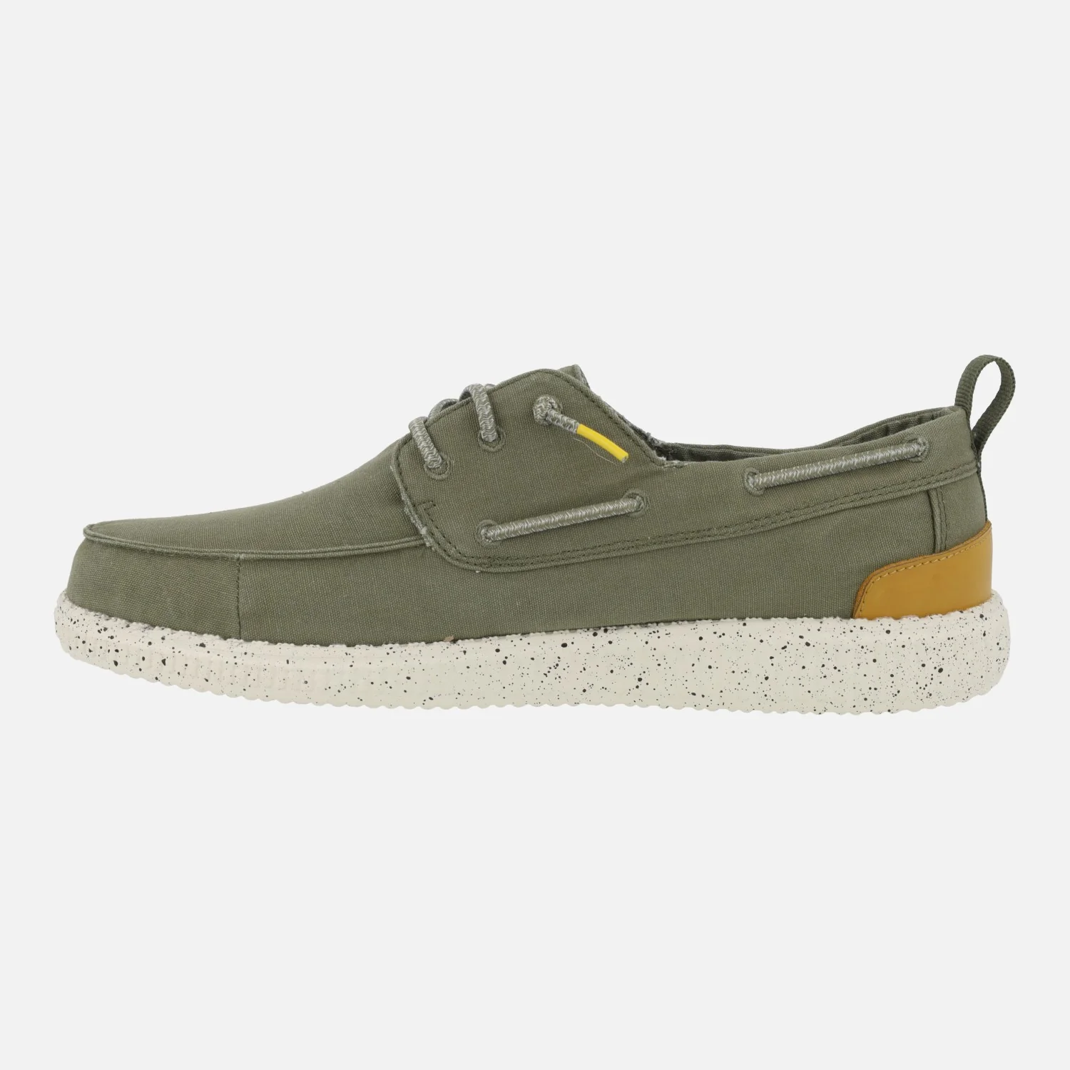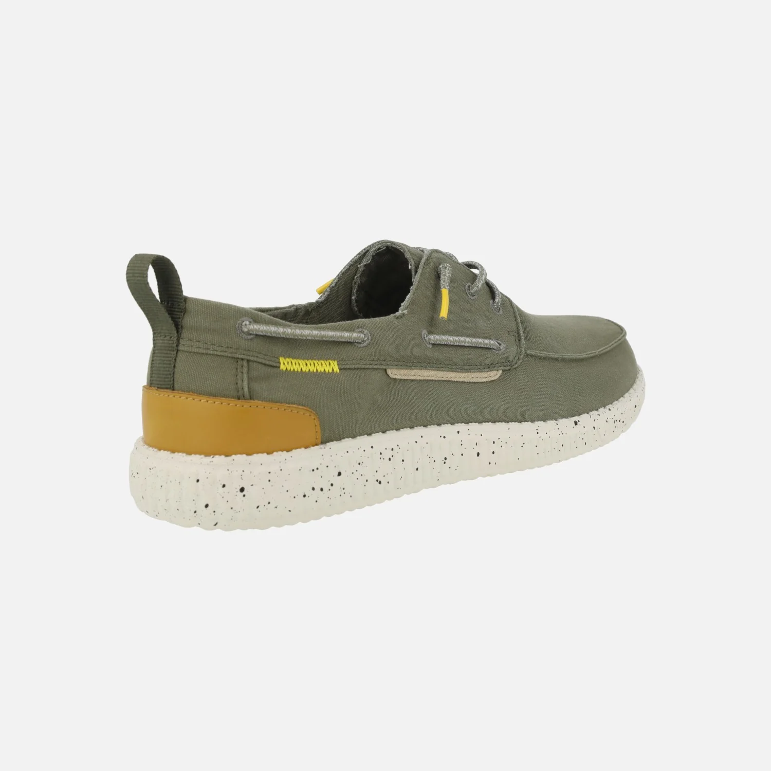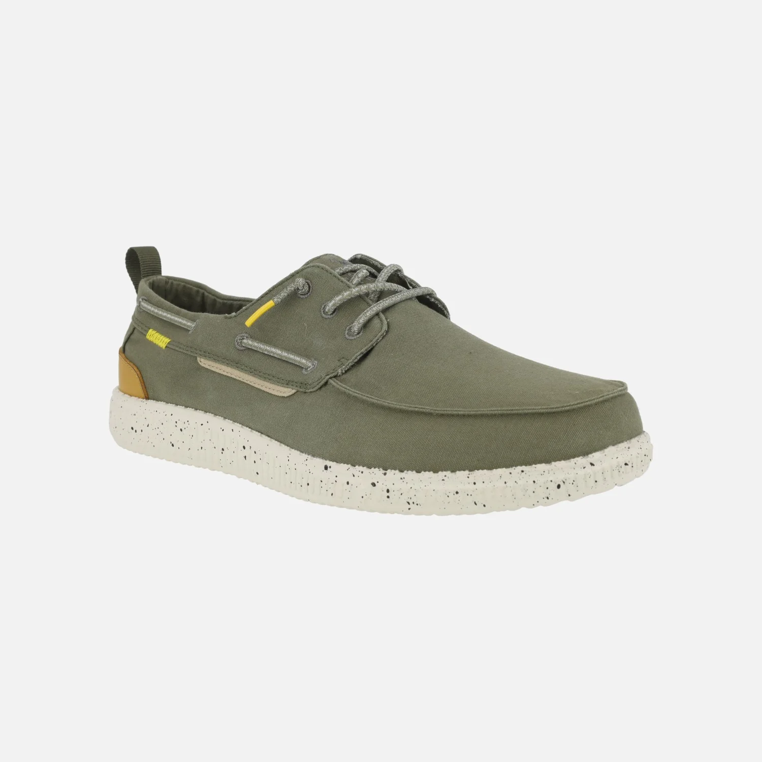 Zapatos naúticos para hombre de la marca Walk in pitas, modelo WP150 Jack kaki. Zapatos elaborados en tejido algodón, con cierre de cordones elásticos. Interior textil, con plantillas extraíbles forradas de piel. Piso de goma EVA, muy ligero.